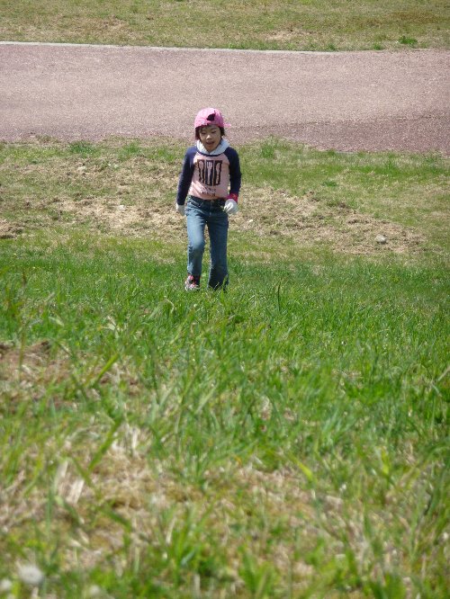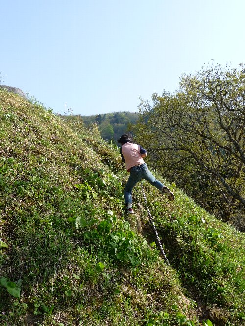 ここがなんだかいい感じの草地、そして傾斜が面白くってどこまで登るかなぁって思って凜を放してやったのよ。