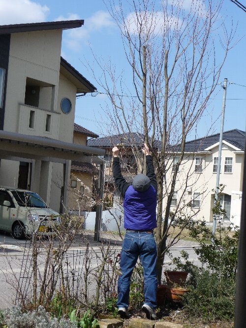 あ~!!凜パパそれはカロライナジャスミンのつるぅ!!桂に巻きついてたいかにも枯れたツルのようなカロライナジャスミン・・・でもそれ時期が来れば芽吹くのだけど・・・(--)切られはずされましたです。