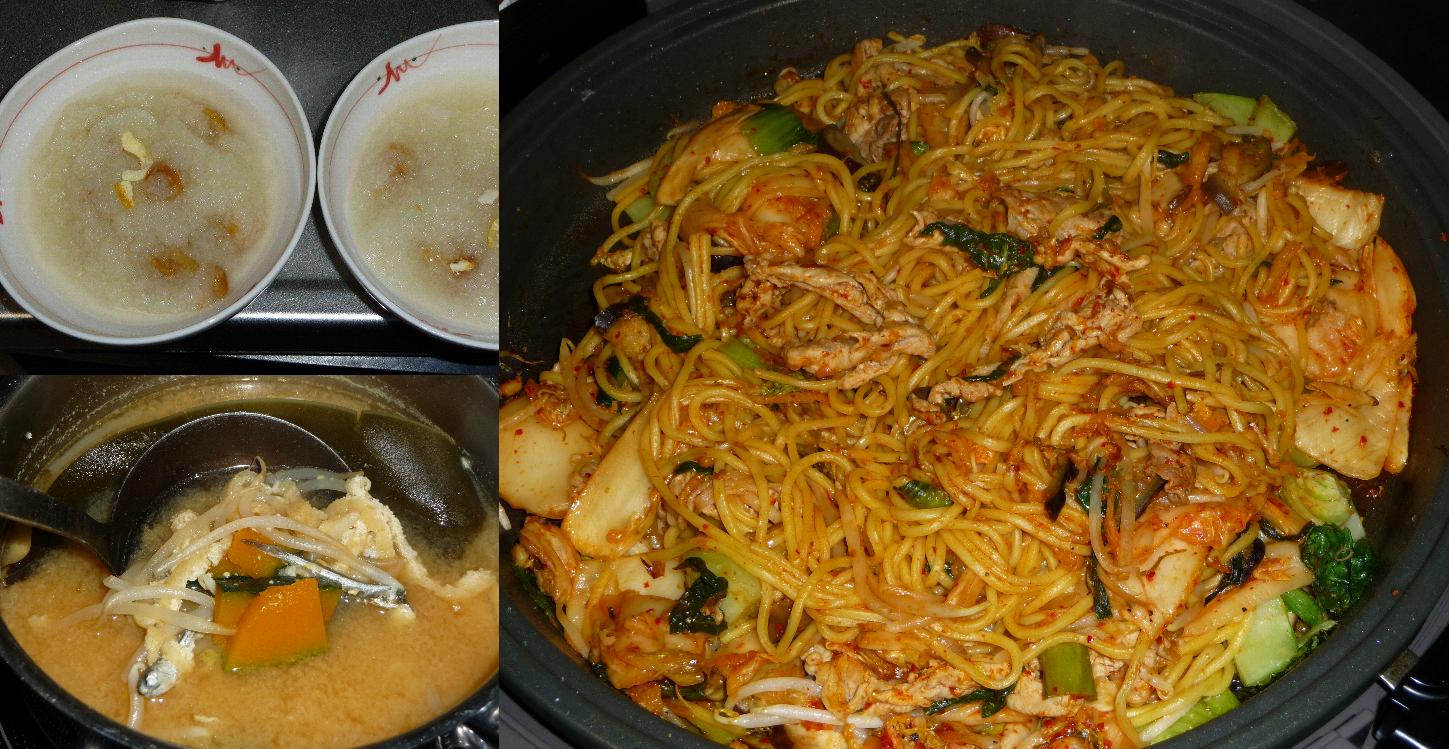 夕飯はねえちゃんがいないのでキムチヤキソバにしてみました。