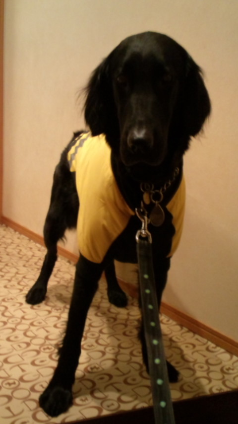 夕べのお散歩のとき凜が寒そうだったんでこの間カヤに着せたいただいたベスト?