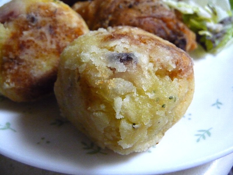 ジャガイモをマッシュしてそこにタコとタラコとパセリ、そしてマヨネーズ入れて片栗まぶして焼いたんだけどね、うまいよぉ~(^(00)^)