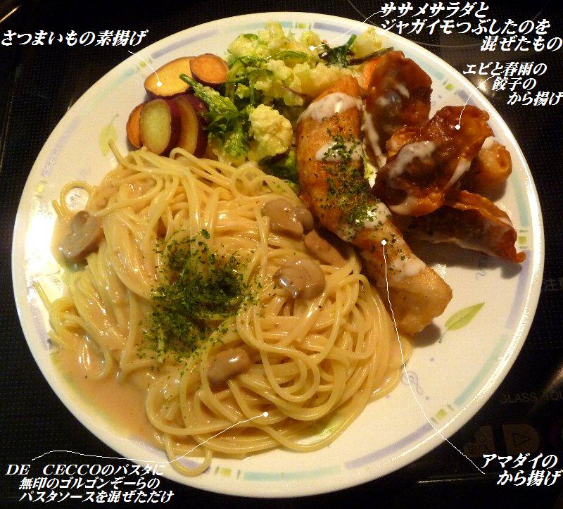 今日はね、ご飯をたかなかったんでパスタにしてみました。