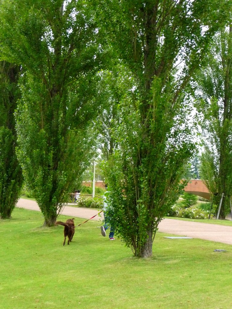いつもよりワンはもちろんニンも少ない公園内にいつもは見かけない若い子の団体があっちにもこっちにも、多分電車とかでお祭りに来た中高生のグループが電車時間待ち?待ちって訳じゃないけど公園に来てみた?そんな感じかしら?