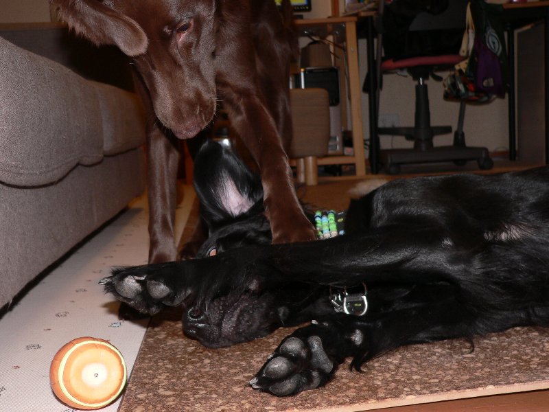 ったくぅ、凜だから堪忍してくれてるんだからね、だれかれかまわずりんとの絡みみたいなこと求めるのは×だぞ!しゃぁないからおもちゃ譲ったりもするけど、やっぱり甘やかすわけにはいかんでし!ってことなのか(^皿^;)