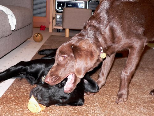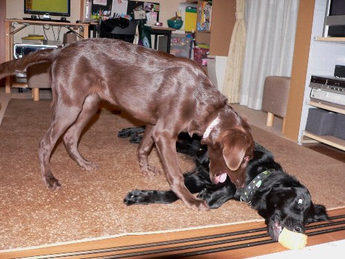 ほんでまず朝、雨降ってたんでおうちの中でもってこい遊びなんかしてお散歩がわりの軽い運動してたんだけど、