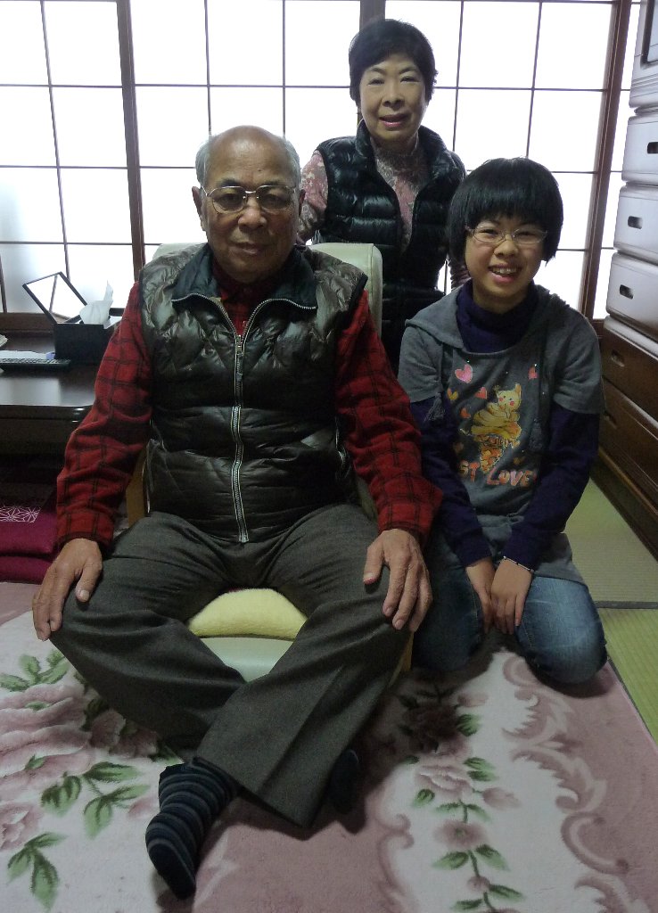 お出かけ前にじいばぁとねえちゃんで元旦記念写真♪