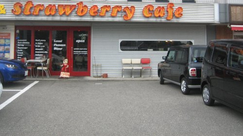 駐車場も日陰が無い・・・んでネットで探しているとこうちゃんのお店、レガルから程近いストロベリーカフェなるものを見つけた。