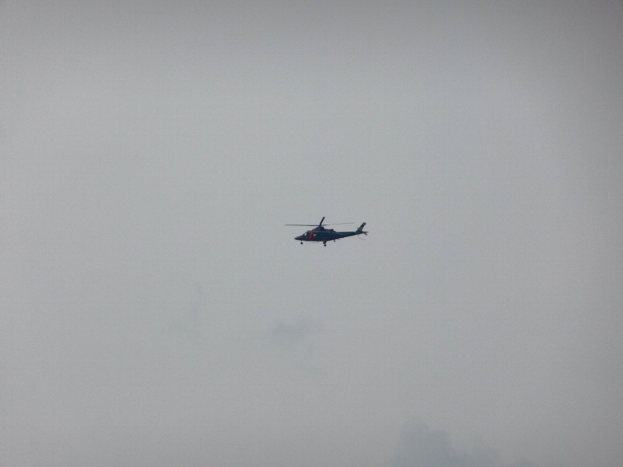 色からすると警察のヘリかしら?上空で止まってじっとしてたのをじっと見てたら動き出して行ったかと思ったら旋回してまた戻ってきた?何かあったの?