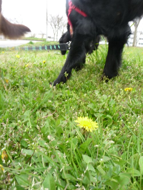 本犬軽くぱにくってるし結構な深さもあって(ちょうど前足を地上につけて立つ感じ?水の流れは速いけどカサは少ないです、地面ぎりぎりまでってこともあるからよかったぁ~ -。-;)抱えあげるわけにも行かず何とかリードで誘導、時間にしたら1分もかかってなかったんだろうけど長く感じたよぉ。