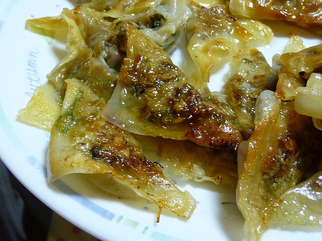 詰め終わったら焼きは早かった、なんせ普通の餃子より中味がちょっとしか入れれないので薄い!