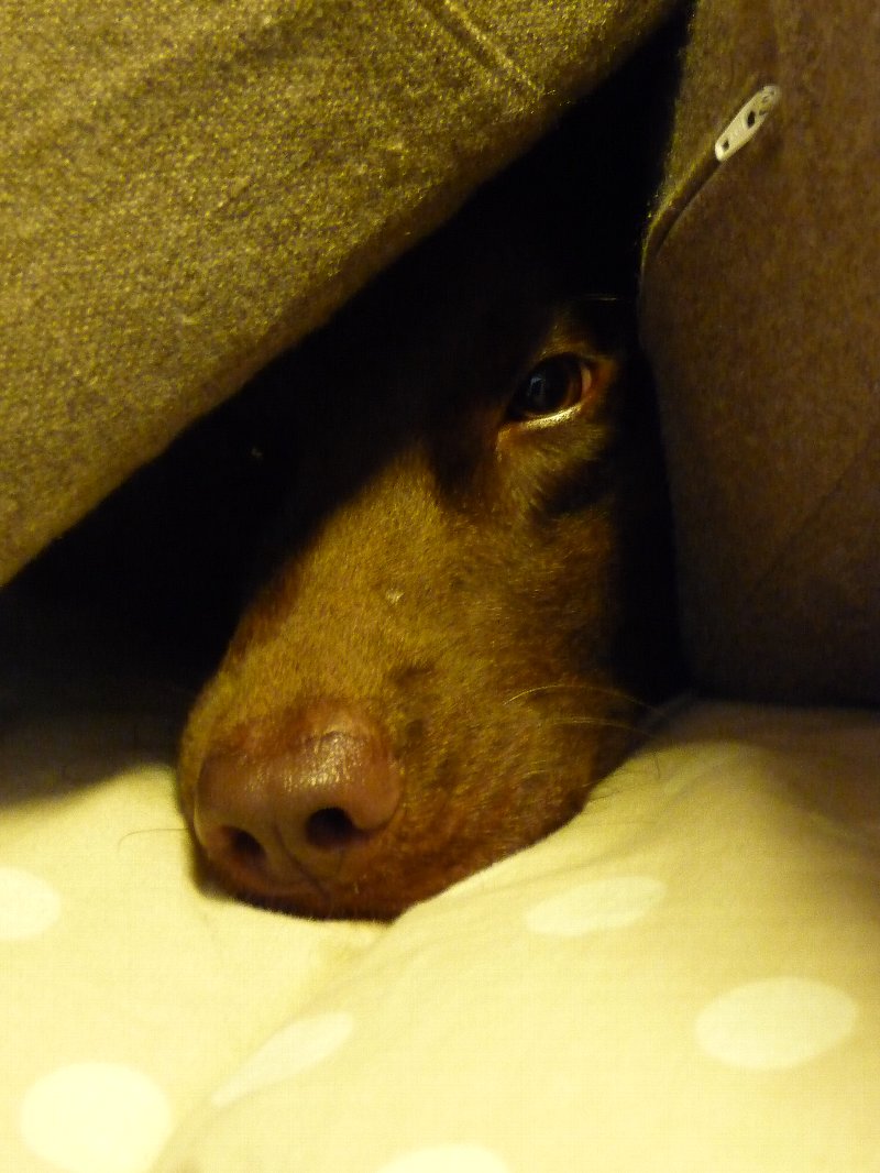 雷さんがもう行っちゃっても、あっちの机の下こっちの机の下って隠れちゃって(--;)