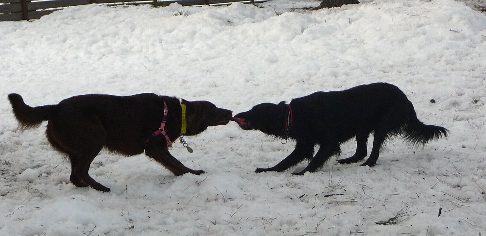 いえいえ凜の顔が細い部分と毛がもっさの部分のちょうど境にレトの尻尾が写っちゃっただけなんだけど、なんだか遠近感のおかしな写真が撮れました。