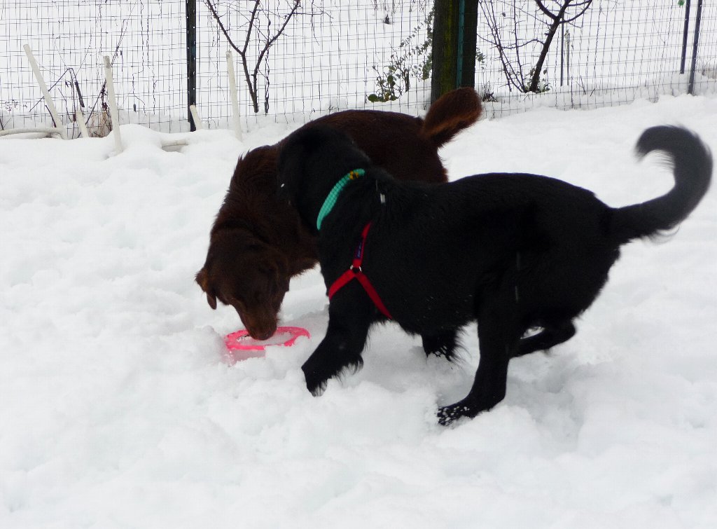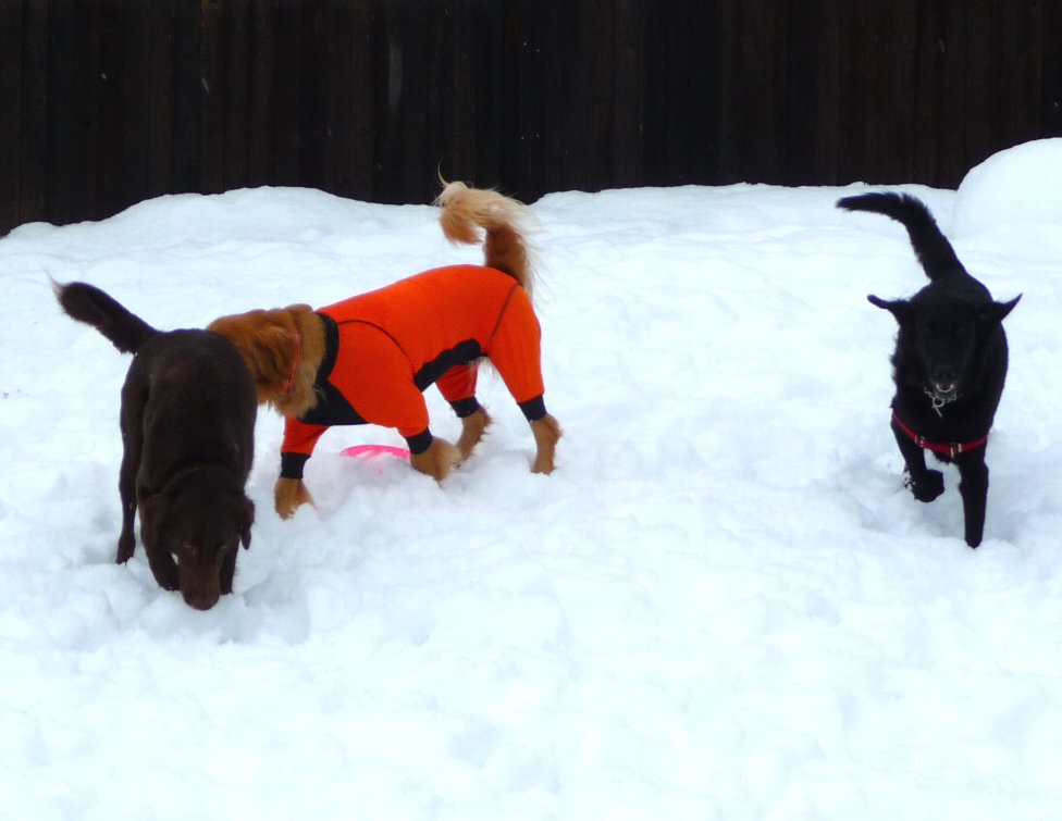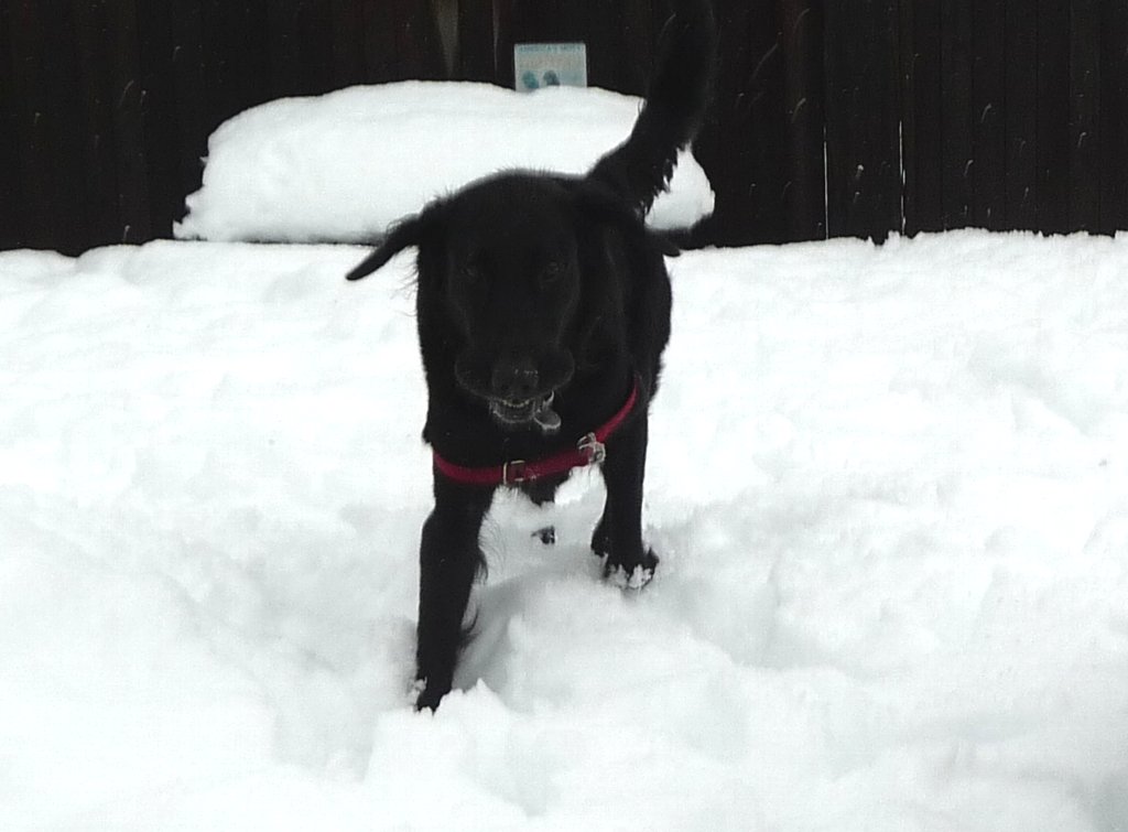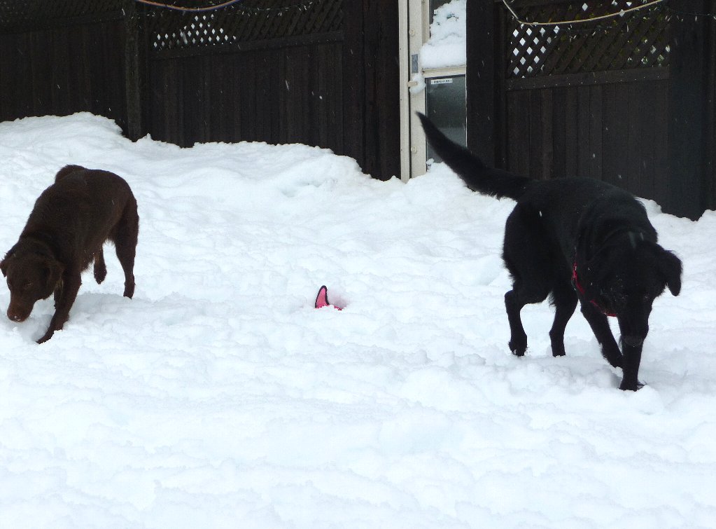 1時間ほど遊んでたんだけど雪がどんどんぼたぼた雪になってきてワンはともかくニンの着てるものまでびっしょびしょになりだしたしお腹もすいただろうからおうちに帰ることにしました。