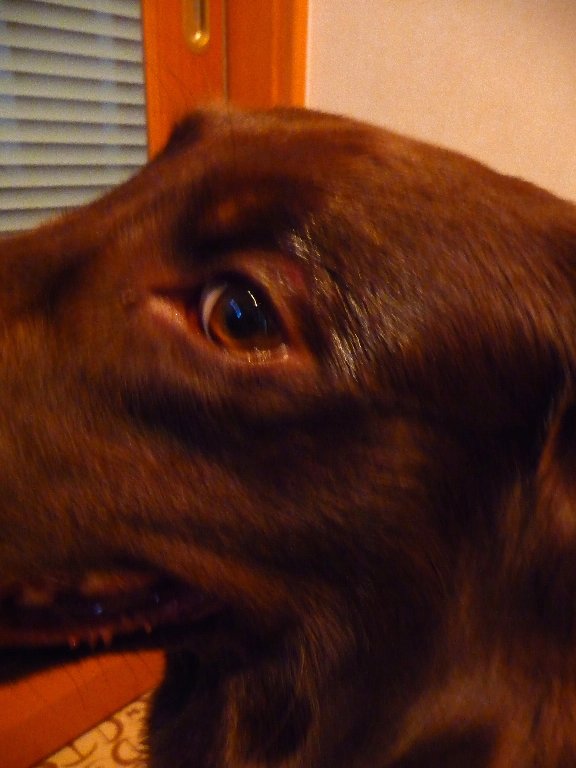 よく見ると左目の上にポチッと・・・なんだろ?ニキビ???