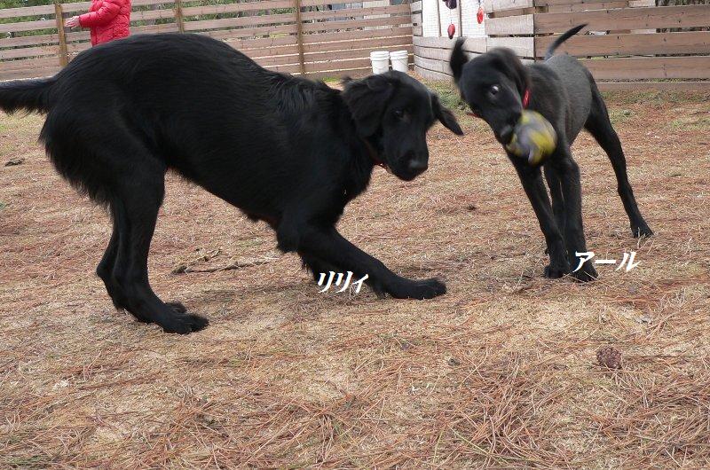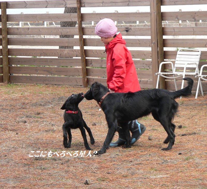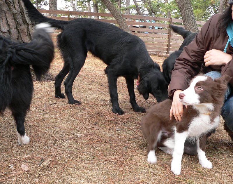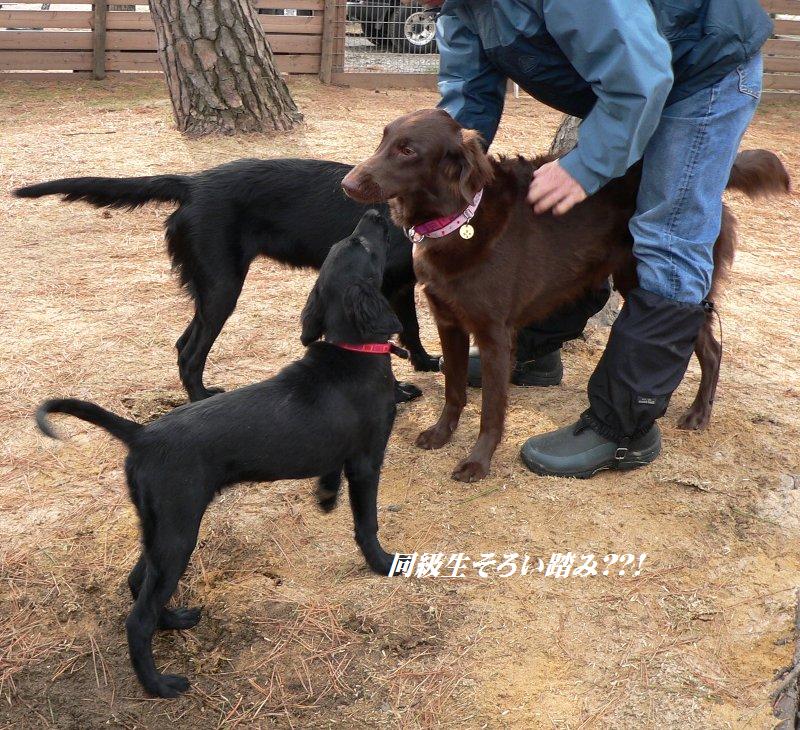 男の子が来るとどうも取り締まらなくっちゃ気がすまないらしく・・・4ヶ月のボーダー君に挑まなくっても(^^;)左の黒のボーダー君8ヶ月にも挑んでました。