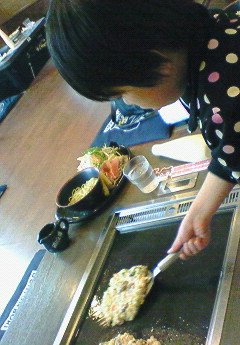 お腹がすいたんでお好み焼き食べいこ!って言ったら凜パパがあんまりお腹すいて無いって。