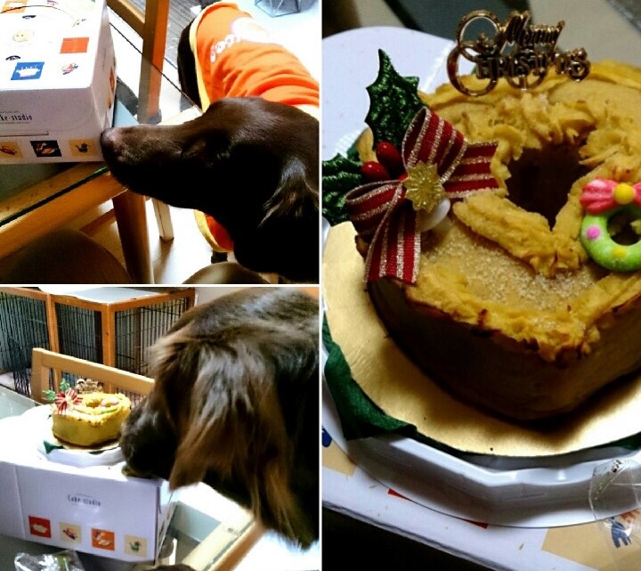 そのあとも何度か雷に震えてたしやっぱり雪の野っぱら走り回ったりはちょっとしてるけど体調崩すことなく2014年を終えることが出来ました。お友達からクリスマスに凜ちゃんにとクリスマスケーキが届いたのを食べるのはカヤさんなのだけど調子崩したあとなのでしばしお預け、完全回復してからいただきました。