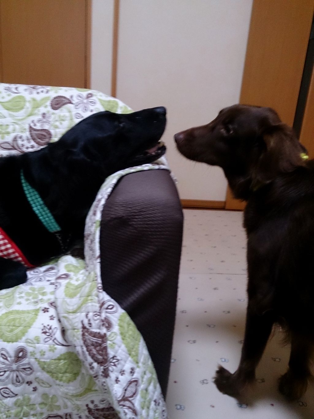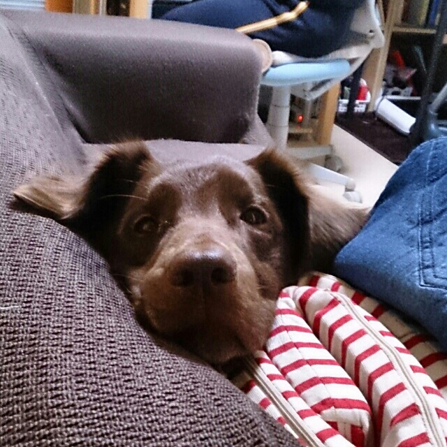 雷ぶるぶる以来うちではうちのワンコ禁止になってたソファーがいつの間にか・・・凜ちゃんずっと我慢してたのに(-へ-)