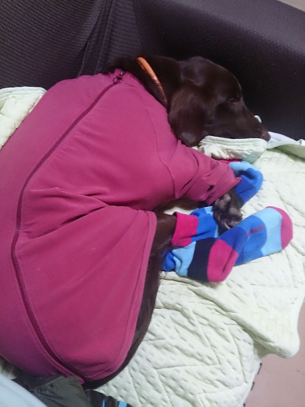 カヤは前にした血液検査で若干甲状腺低下気味(薬を処方するほどではないホンの少々の低値)で体温調節へたっぴな子だから外へ出る時、留守の時、寝る時何か着せたりしてケアをしてあげなきゃいけないと言われました。