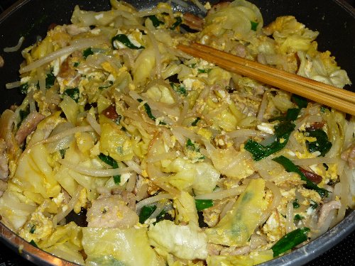キャベツにもやしに葱に韮!それに豚バラと卵を入れてぬくぬくだぁ~♪