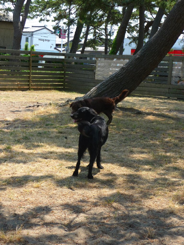 他ワンとのふれあいは無かったけどいろんなにおいの中走ってにおい取りして満足したようで帰るよと言ったら自発的に入り口へ、そしてとってもいいお顔(^^)b