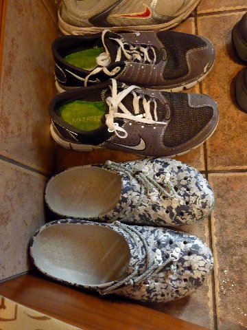 クッションがまったくないし衝撃吸収が無いから余計に腰に悪かろうとちゃんとスニーカーを履けと・・・確かに靴変えただけで結構違うのよね。