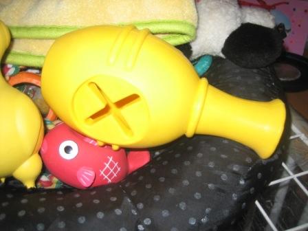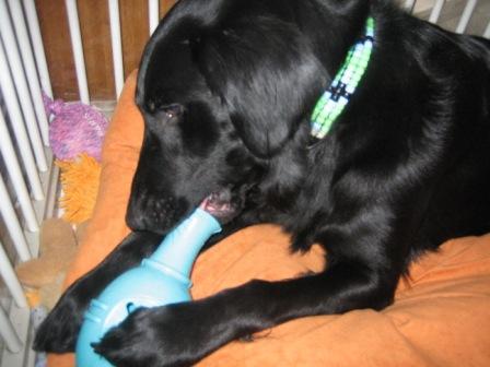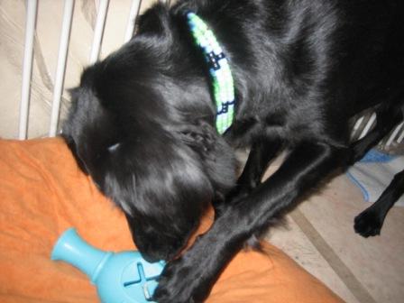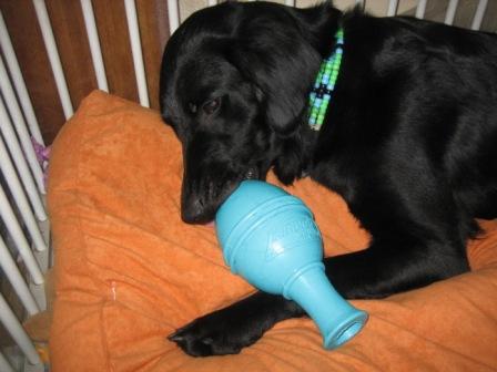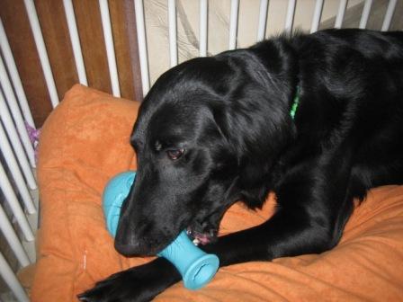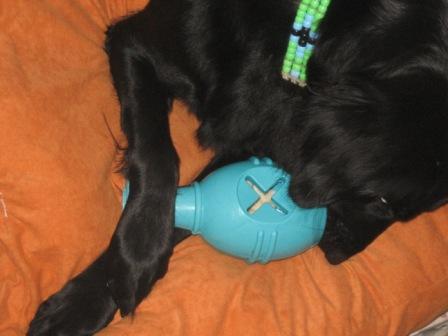 おやつを1ケ入れて(入れるのはコングよりもずっと入れやすかったです)凛に渡してみると・・・