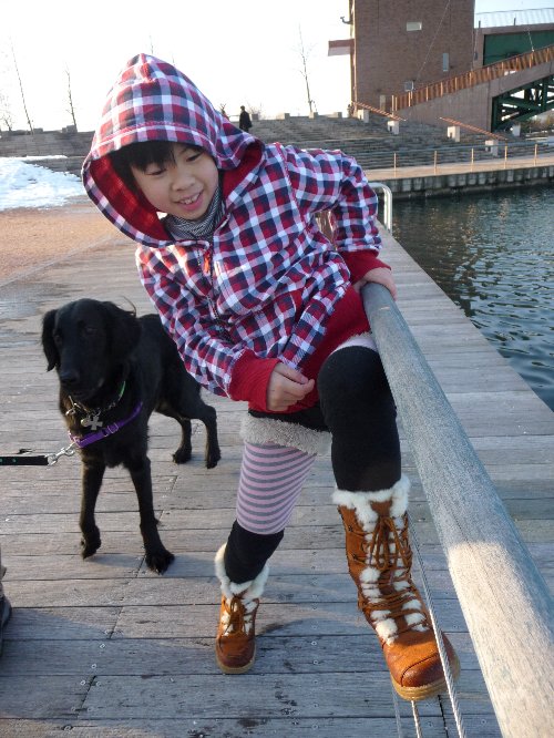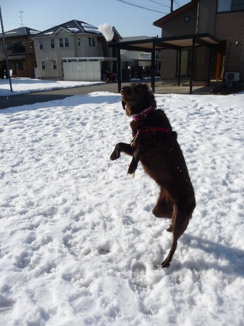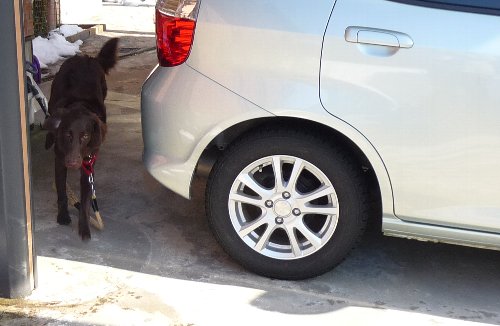 凜ちゃん玄関に出てこなかったんでカヤだけ先に外へ、パパとねえちゃん待ってるのかなぁ?