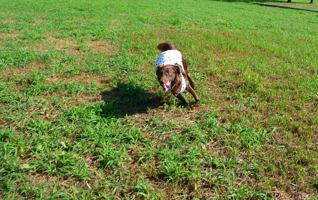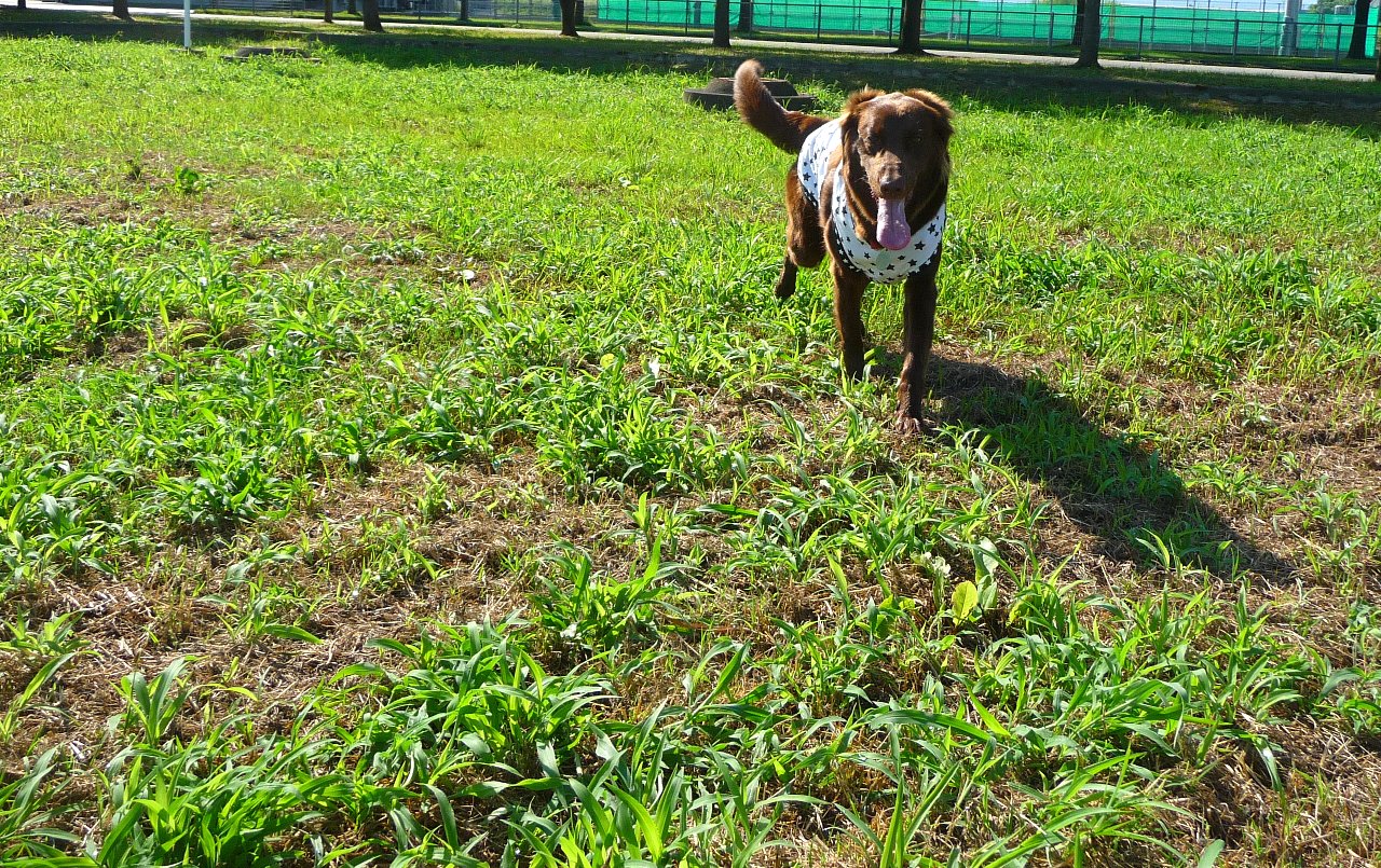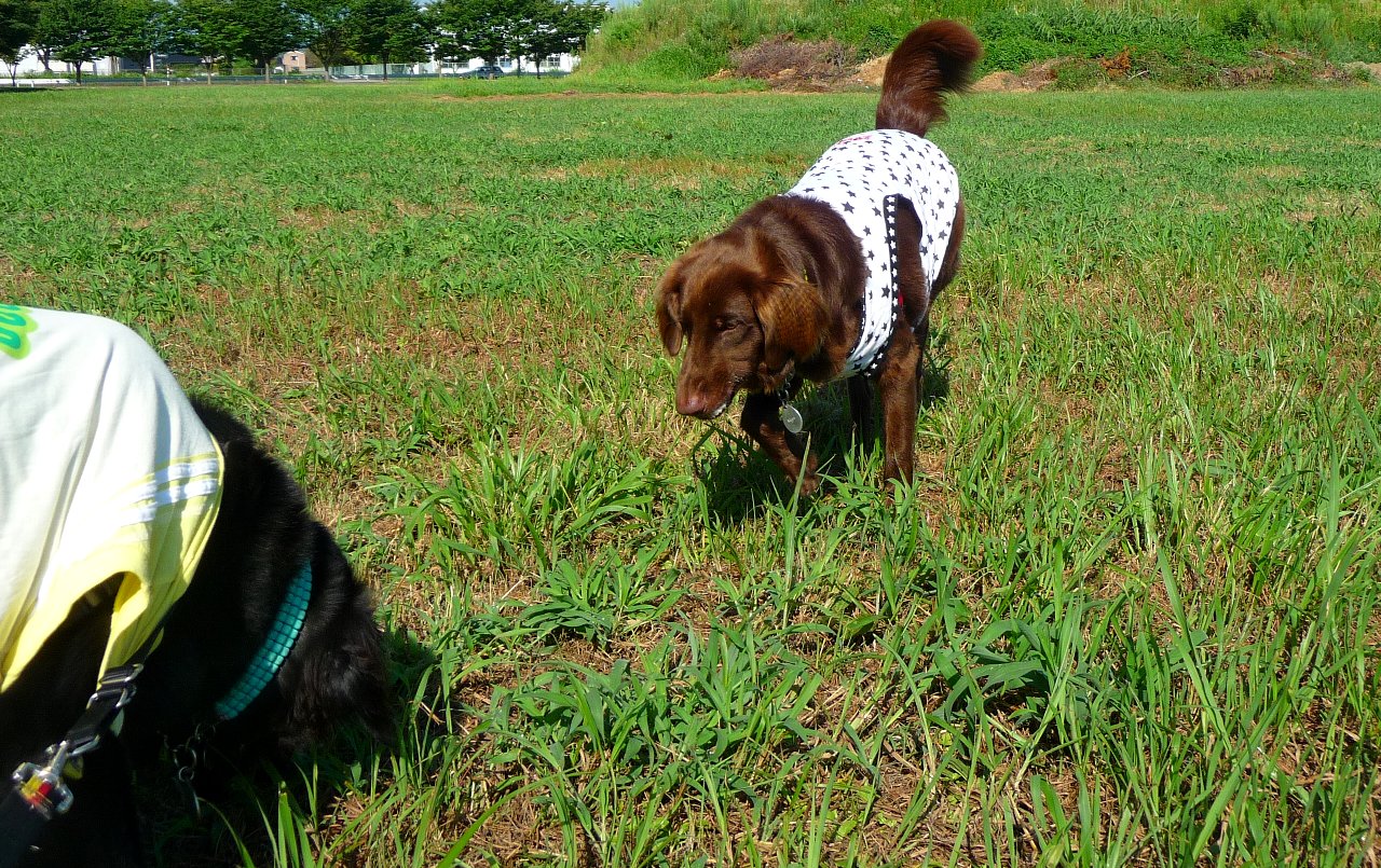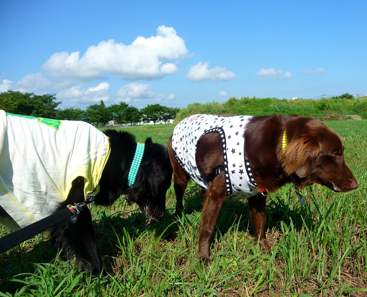 昨日の午前中涼しかったし今日はシッコ・んち散歩じゃなくってちょっと歩くかねぇ~と思って裏の原っぱまで行ってみた。