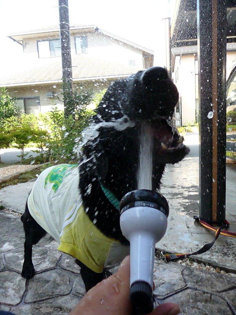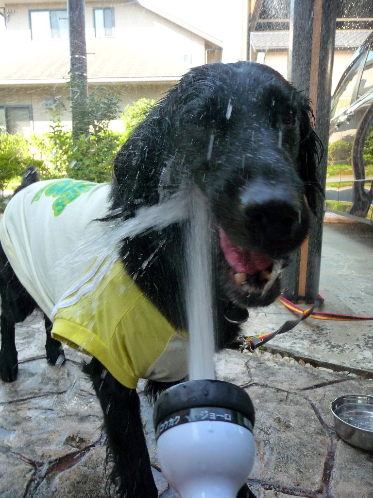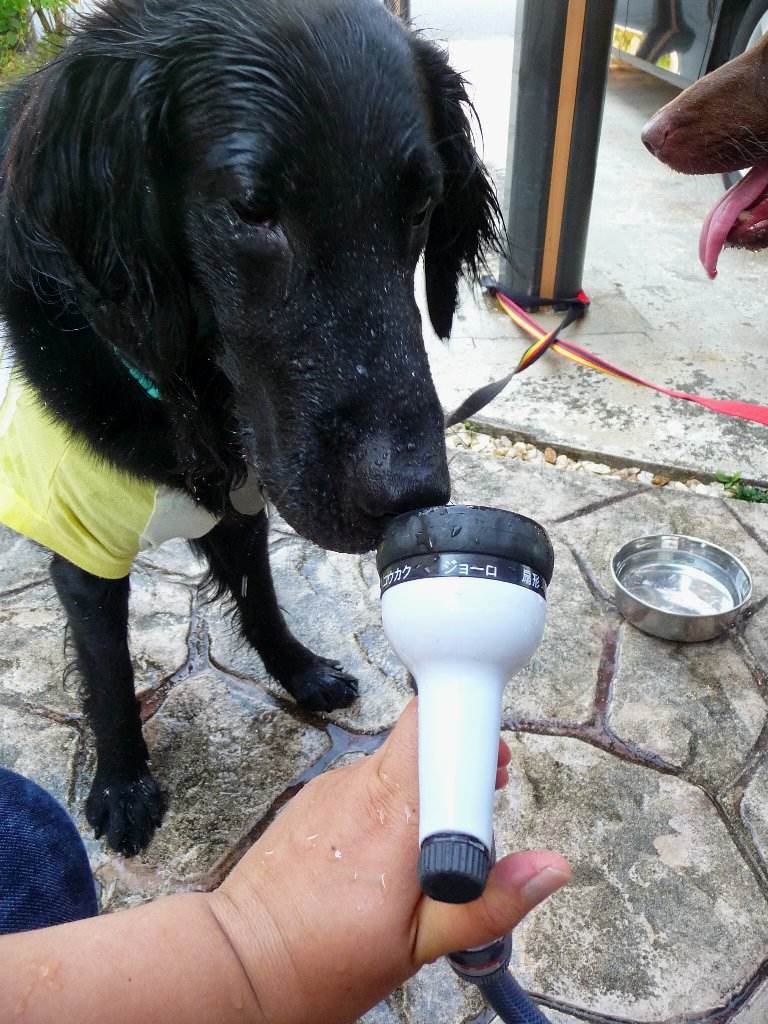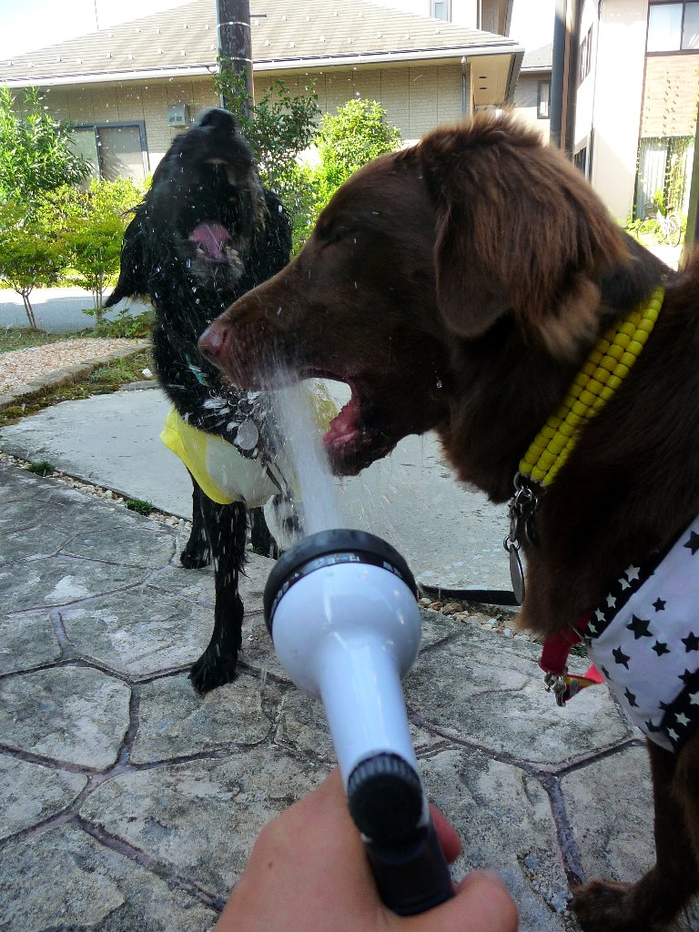 2ワンともまだおうちに入りたくなさそうだったんでちょっとだけホース遊び。