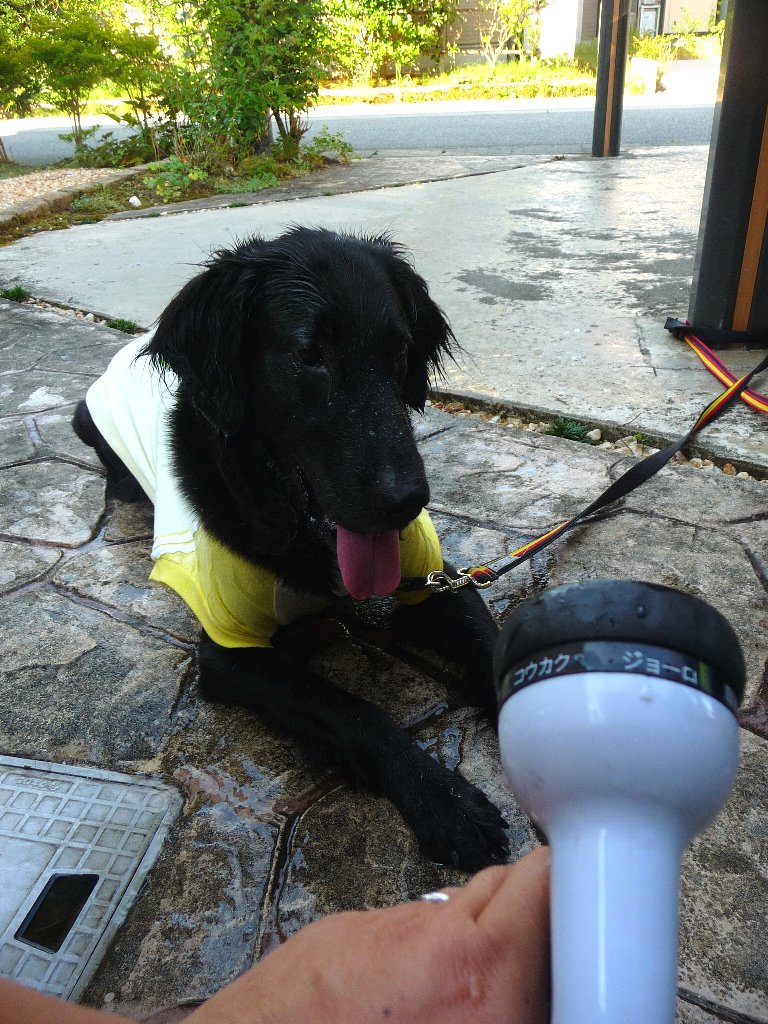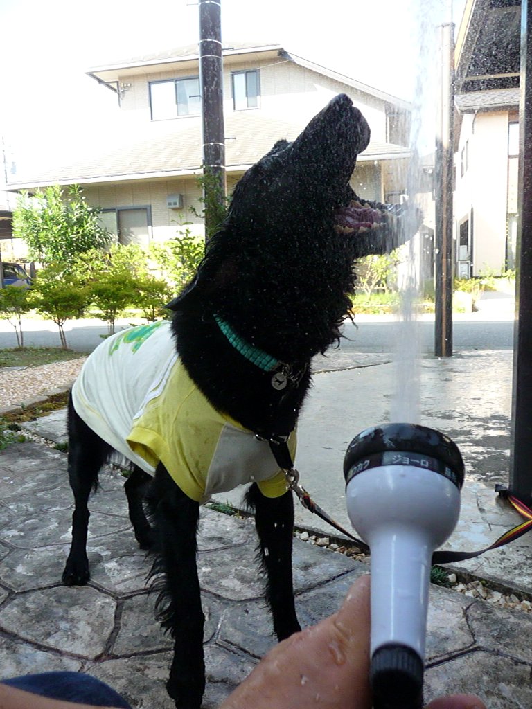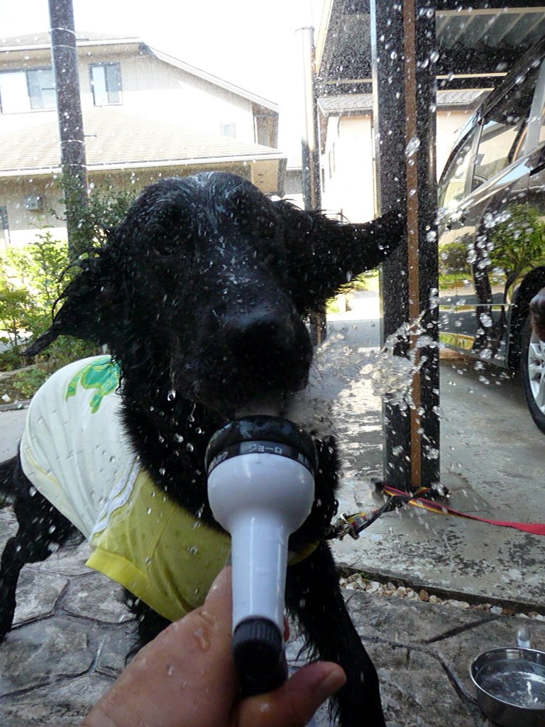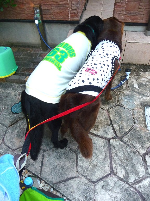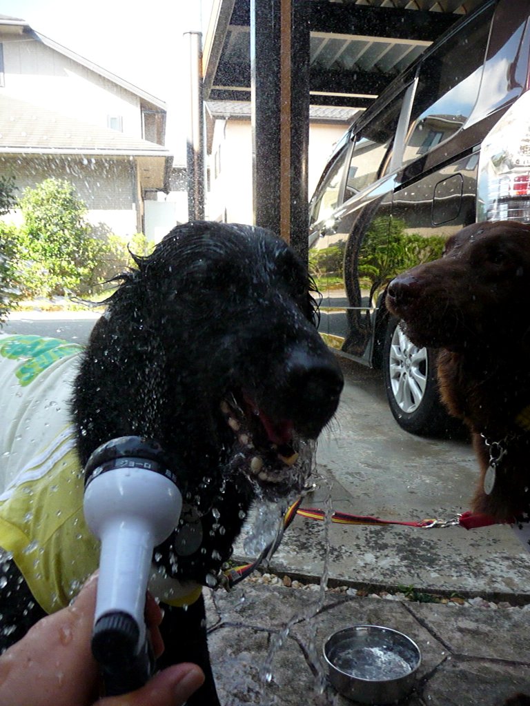 2ワンともまだおうちに入りたくなさそうだったんでちょっとだけホース遊び。