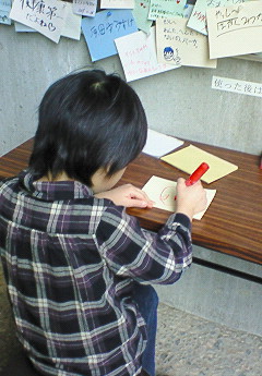下に降りるとメッセージ書くところが。