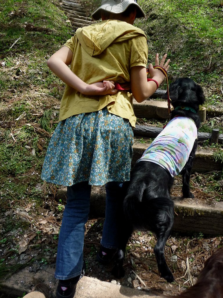 でも行きに必死に引っ張ったときとは大違い、下りはカヤちゃんいい子?
