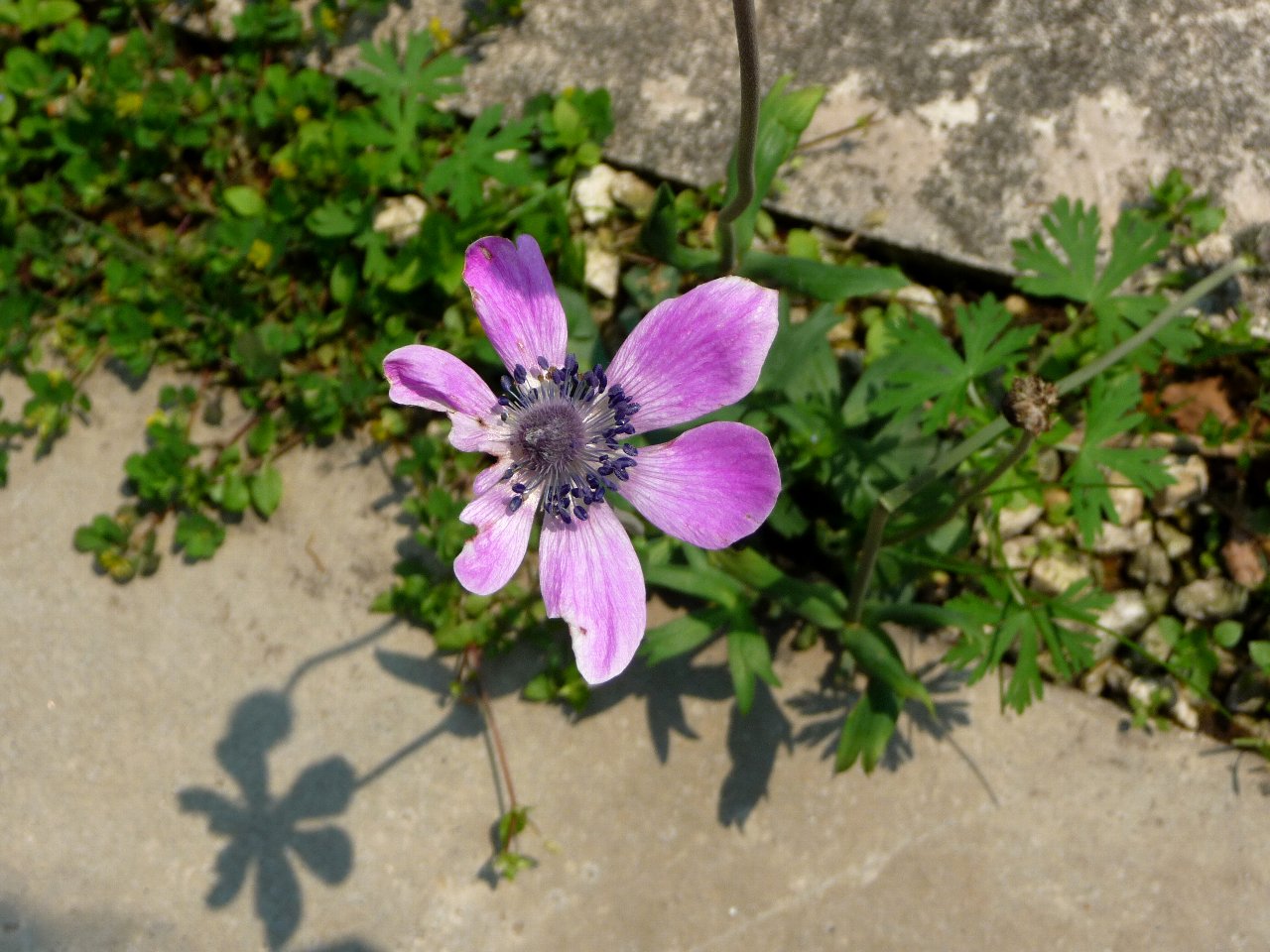 花の名前はアネモネ・フルゲンス 原種に近い自然交配種だそうな。