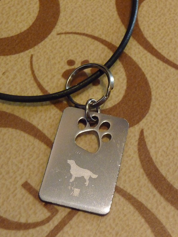 ネックレス状で(カラーに直でも付けれるけど)これが凜、表に犬種シルエットと名前、裏にはケータイと家でんと凛の誕生日を入れてもらいました。