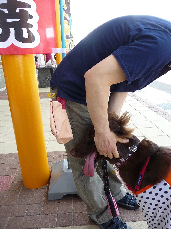 そんなわけでお食事処前でその他2人2ワンは涼み中、