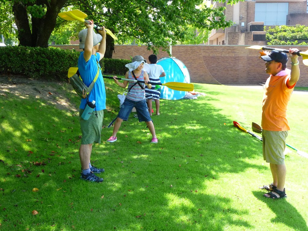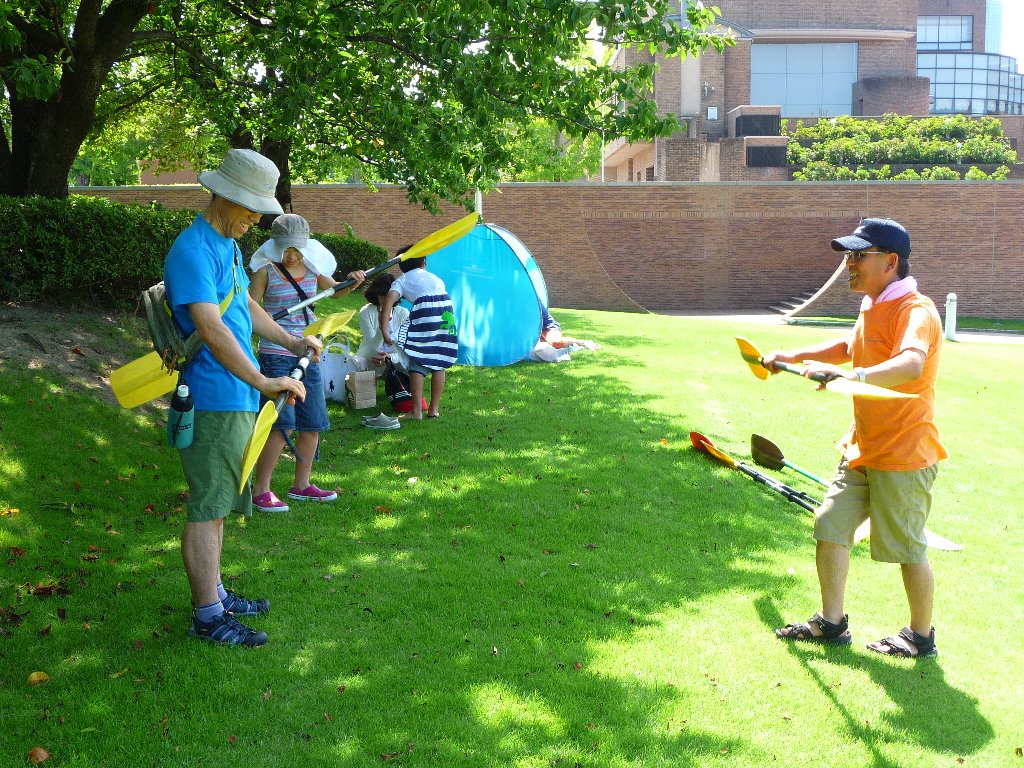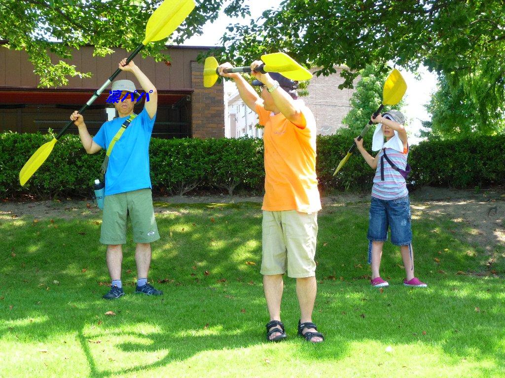 姉ちゃんは前回もカヌーチャレンジしてるしなんていってもモンベルで何度もカヤックに乗ってるんで前回初のときから講習は無で即乗りだったんだけど凜パパ初チャレンジにつき講習を受けます。