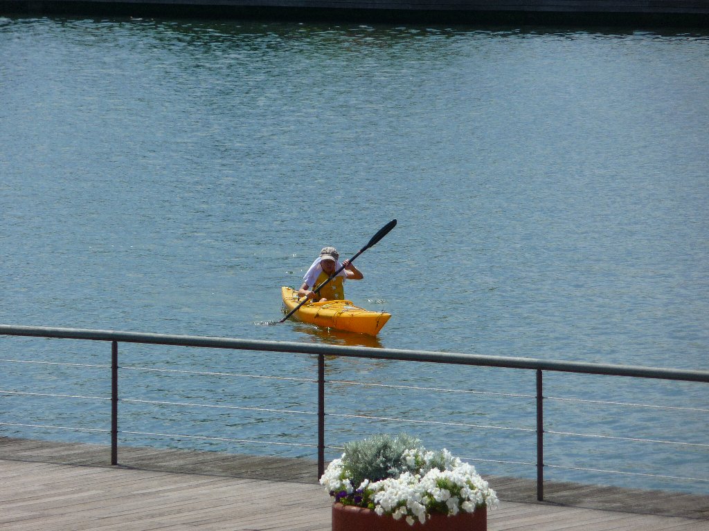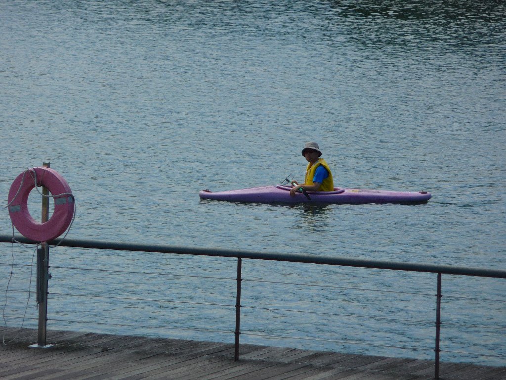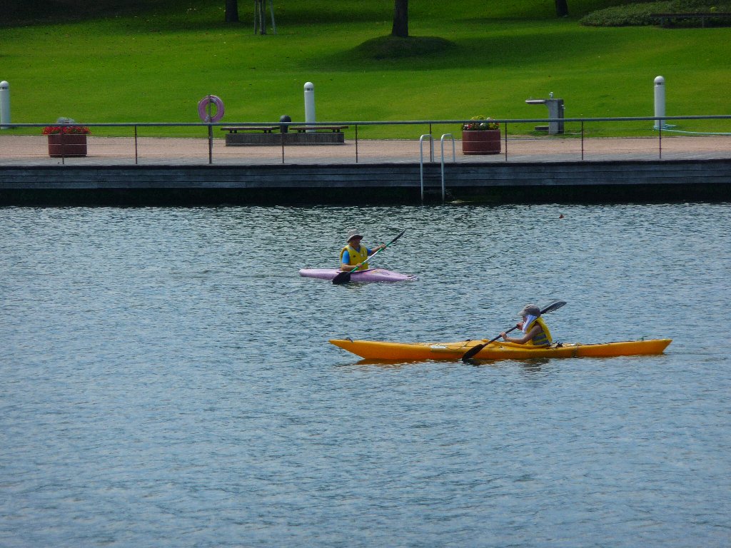 ひっくり返りやすいやつだけどターンとかの技をするのに最適らしく何人かの方(インストラクターさん?)がひっくり返るかとひやひやするようにきゅっといきなりターンしてカヌーが真っ直ぐ水面に刺さる感じになっちゃってみたいなことやってたよ。
