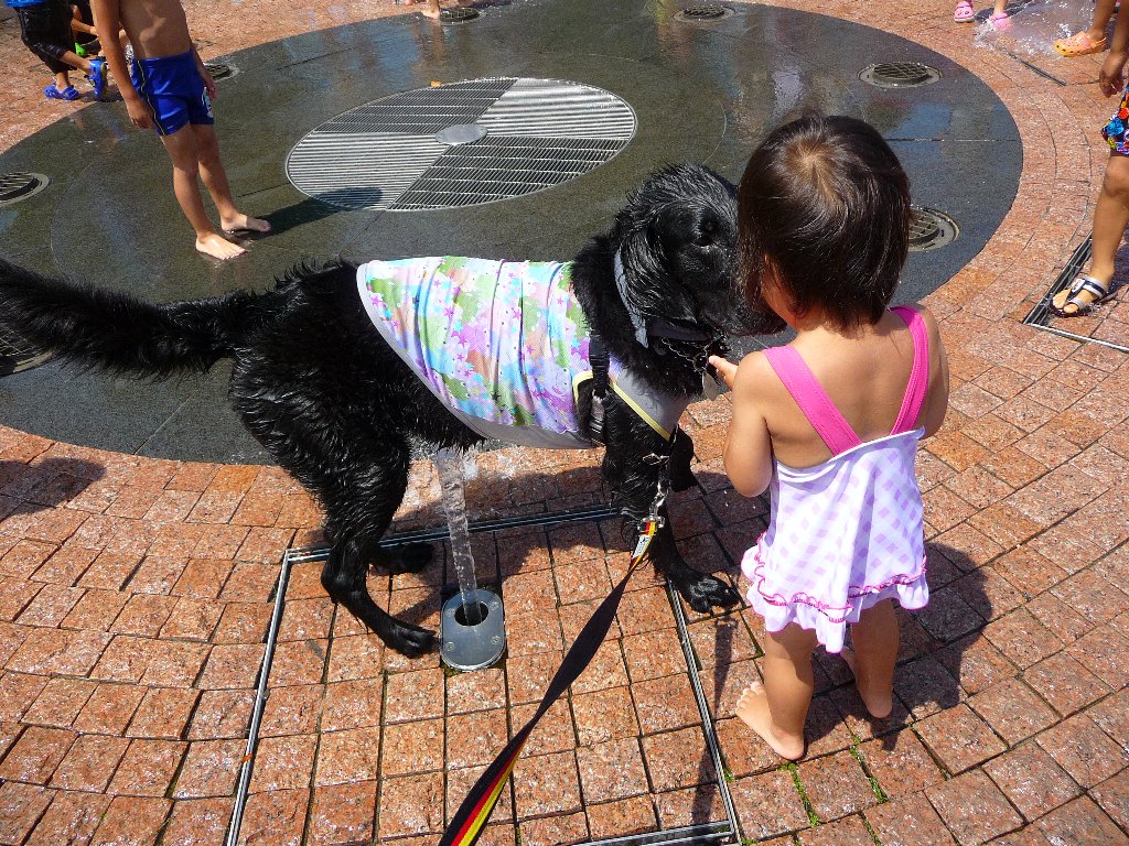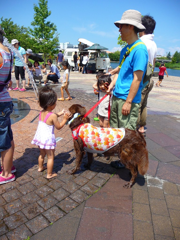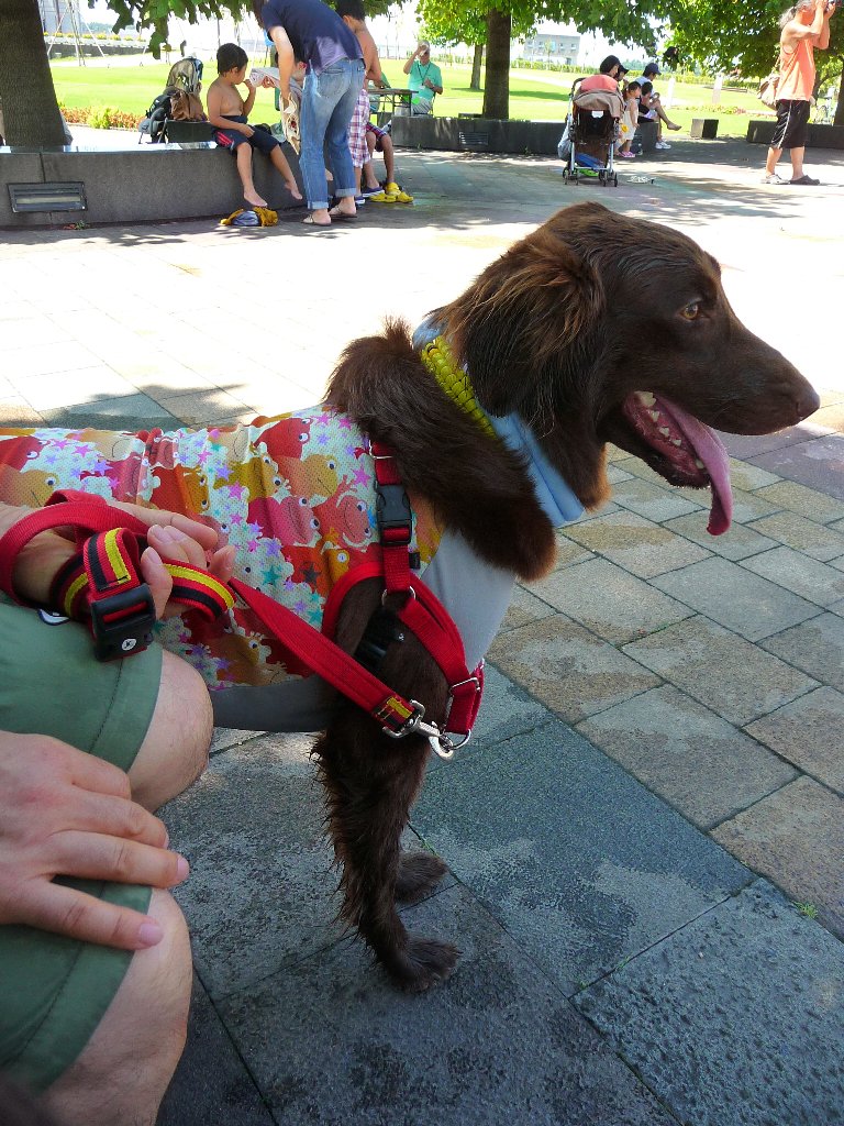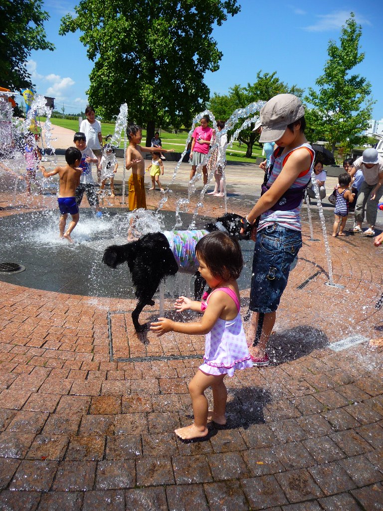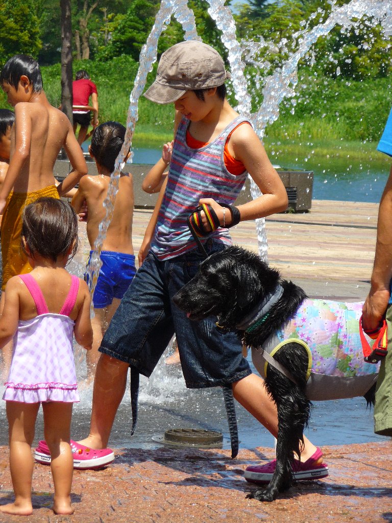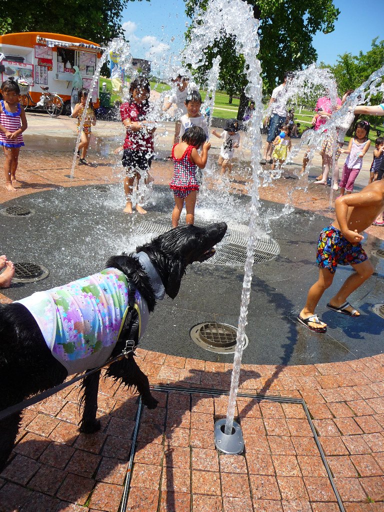 途中でセターを連れたおじさんが同じように噴水のところへ、ってか制御できずに引っ張られるまま噴水へ(--;)周りに小さい子らいるし、みんな凜カヤで大丈夫と思ってるから危ないぞぉ~!!