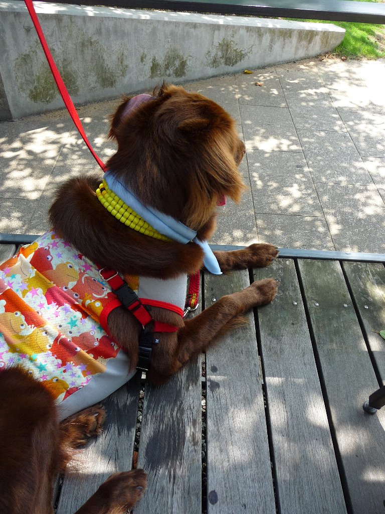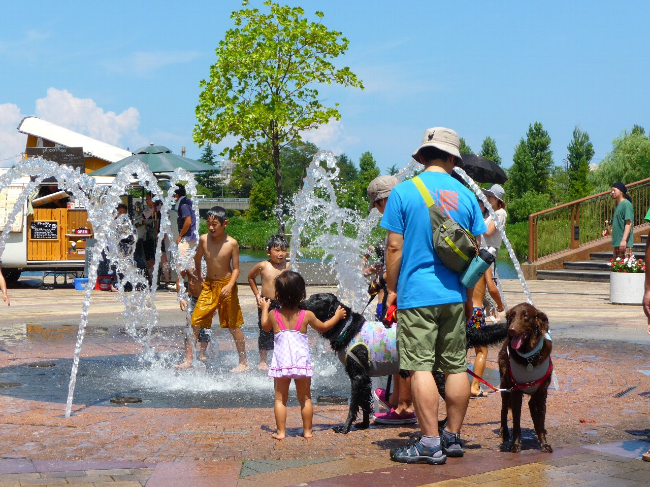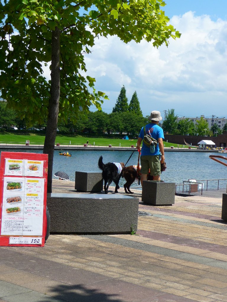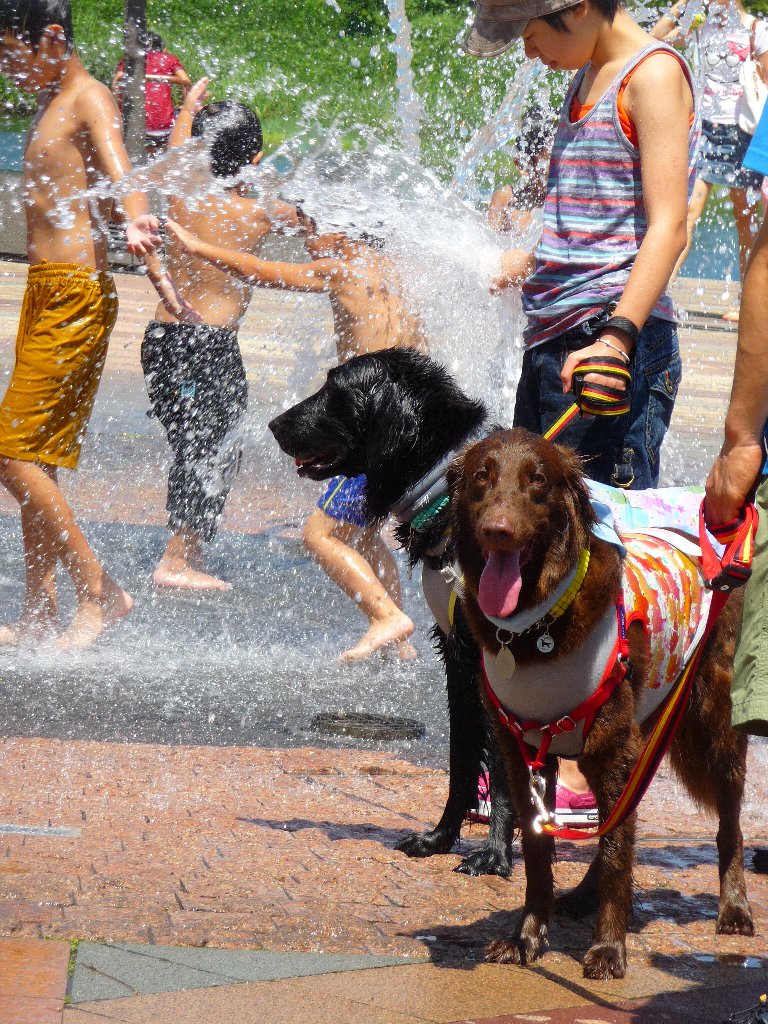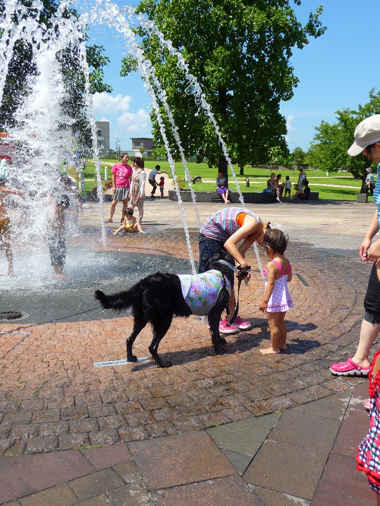 途中でセターを連れたおじさんが同じように噴水のところへ、ってか制御できずに引っ張られるまま噴水へ(--;)周りに小さい子らいるし、みんな凜カヤで大丈夫と思ってるから危ないぞぉ~!!