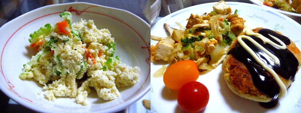 店長が焼き豆腐を刺身にして食べても美味しいよってんでやってみますって言ったけど今日はおからを使ってかかろうって事でゴーヤとおからだらけの夕飯!