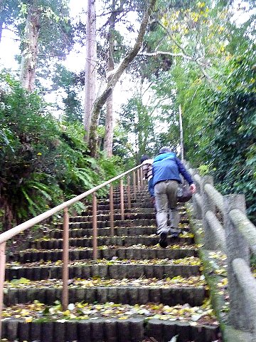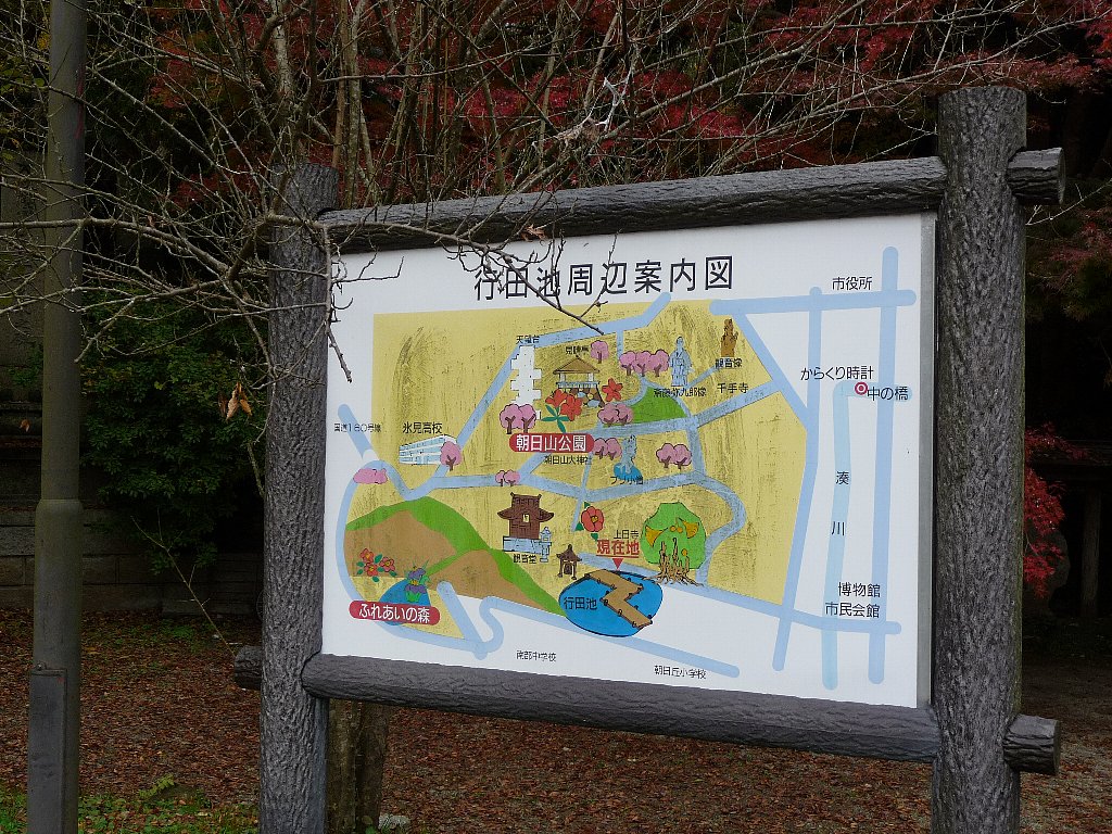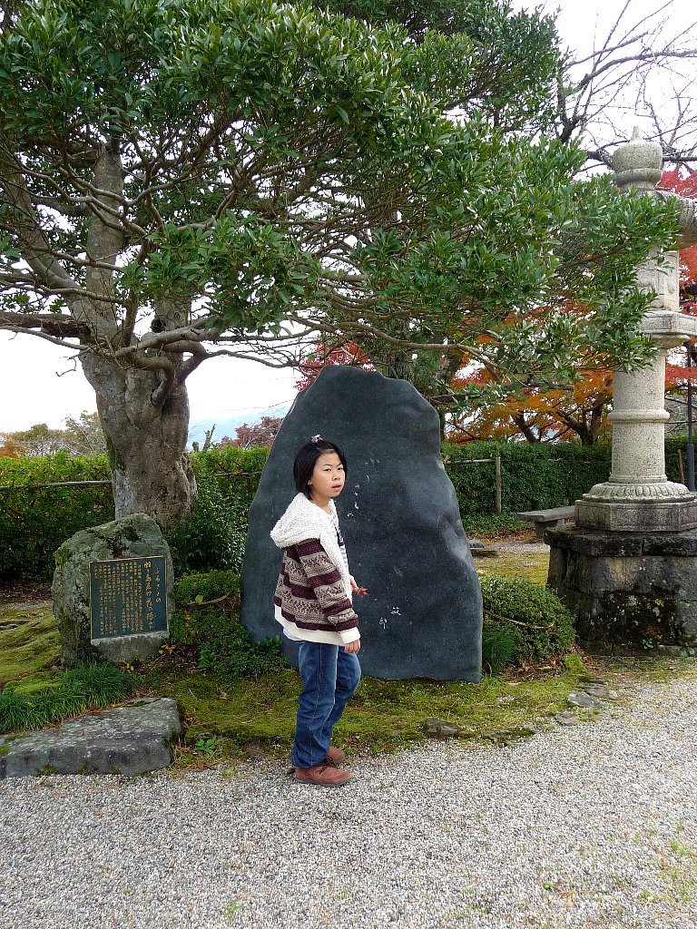 朝日山公園のこの石碑、学校で習ったんですって、字が消えかかってるね。
