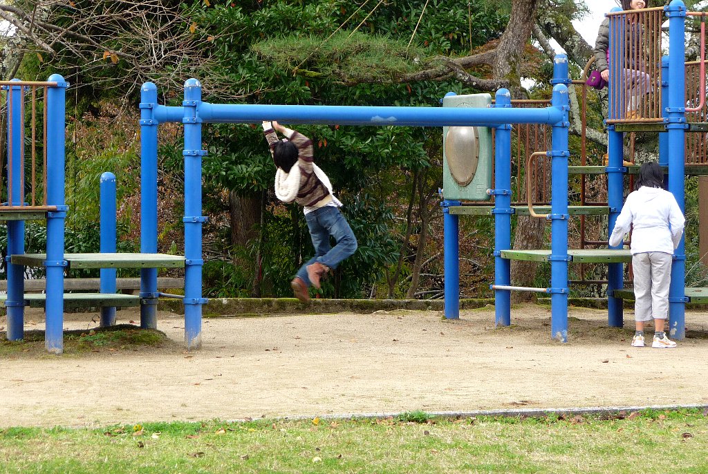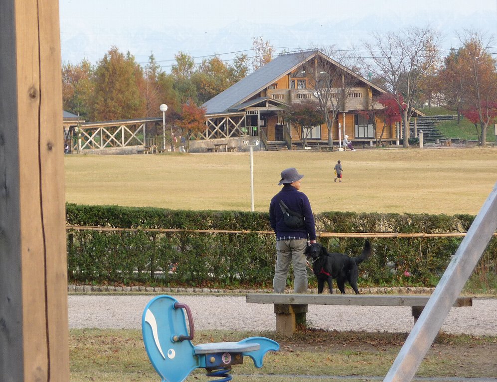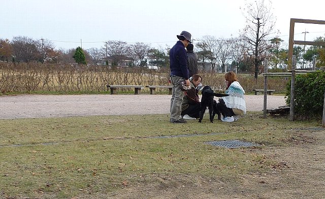 chababaはベンチに腰をおろしてカヤもお付き合い、凜はパパと散策してたらちいちゃい子たちとご挨拶。