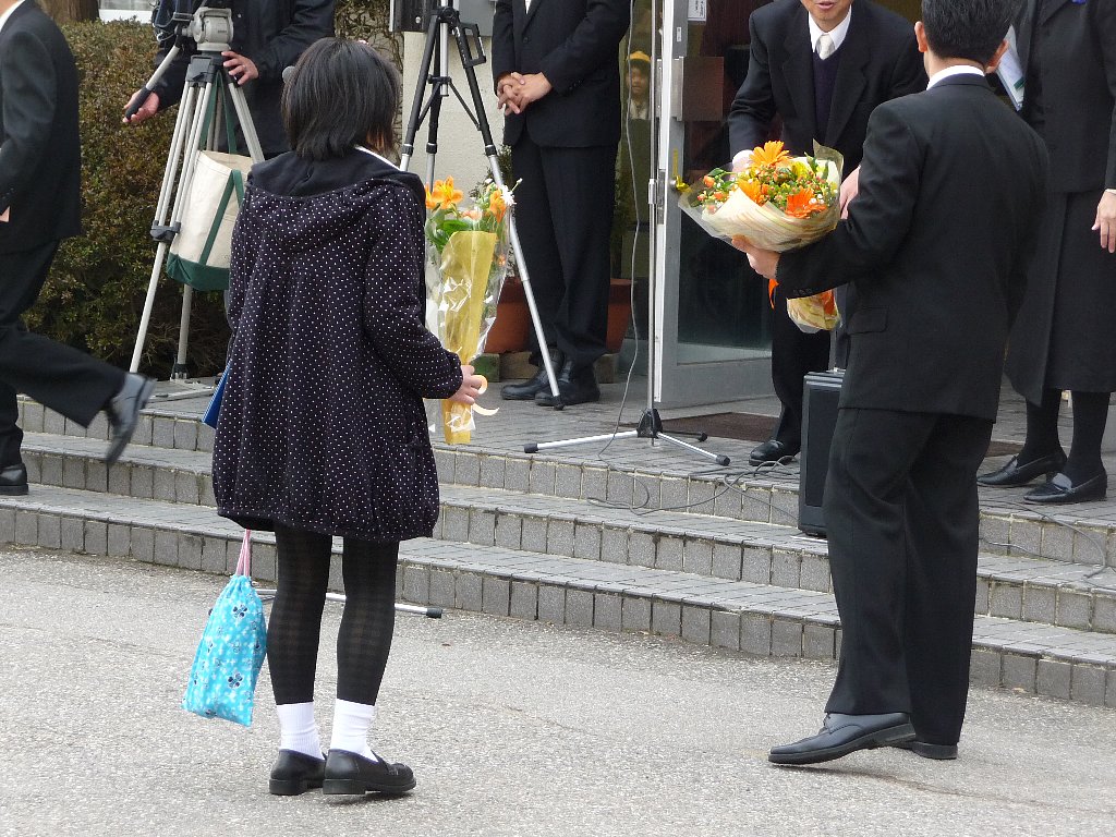 いったん校門を出て在校生の間を通ってしばらく歩き各自親の元へ戻ってくる(^^;)