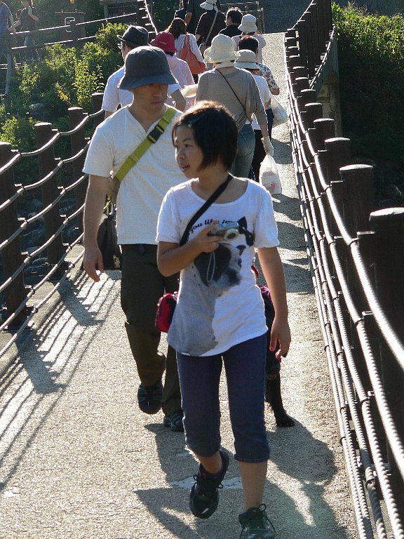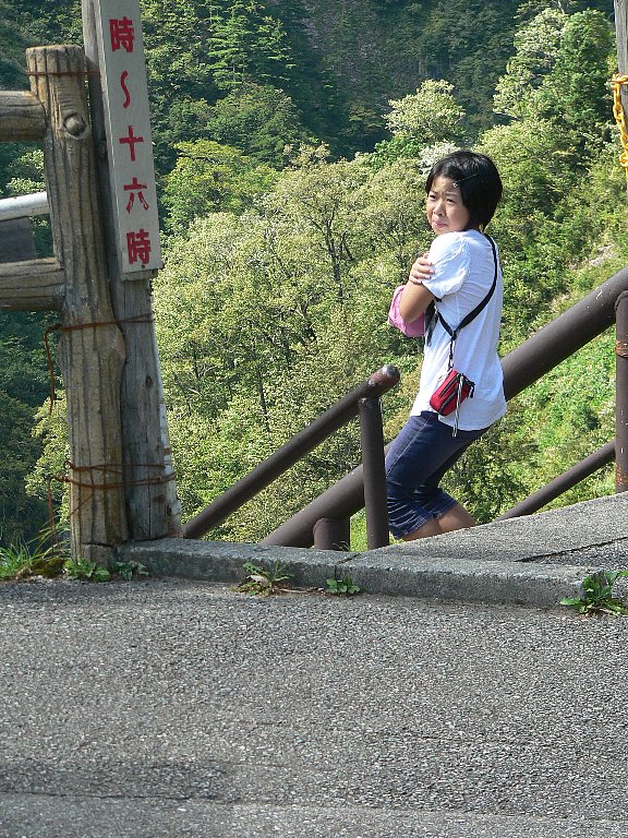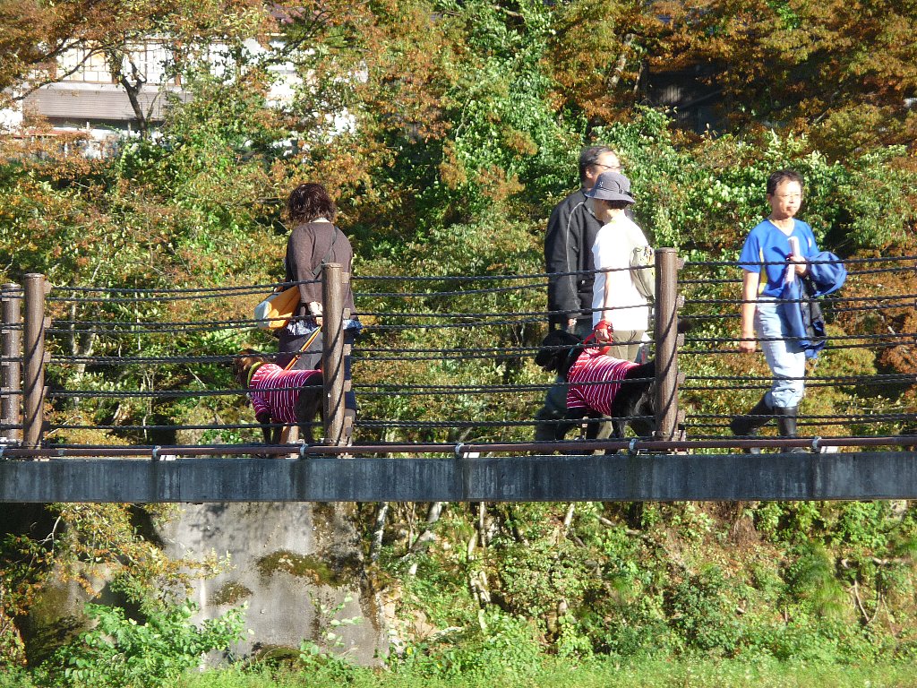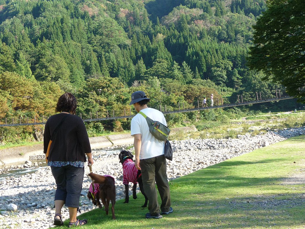 下に降りるともう16時、つり橋がわたりたいってねえちゃんのリクエストで17時には駐車場が閉まっちゃう白川郷へ。
