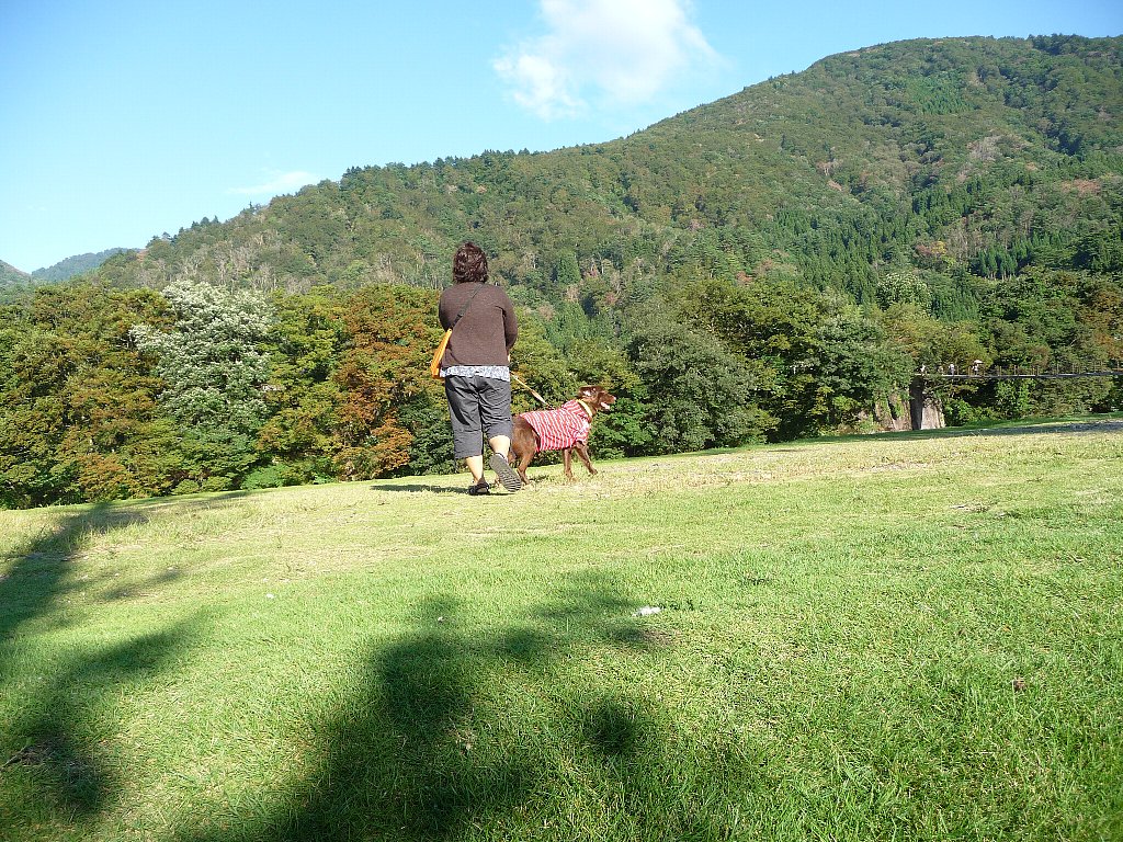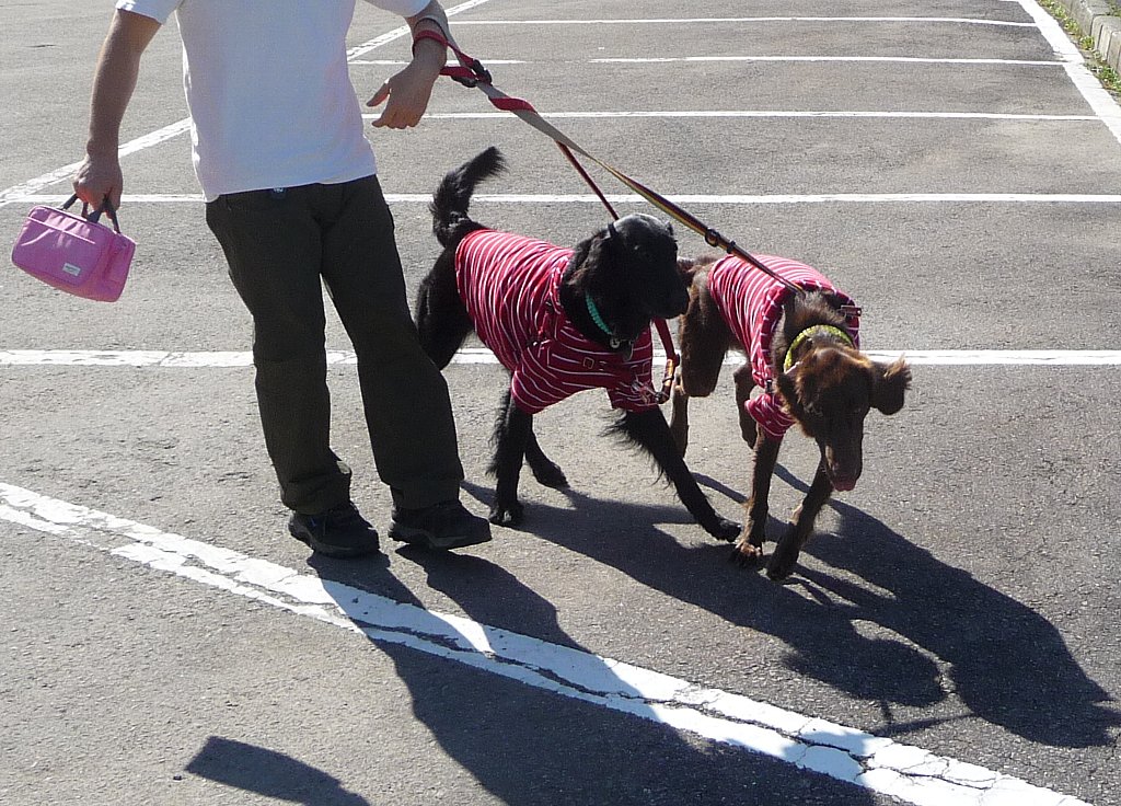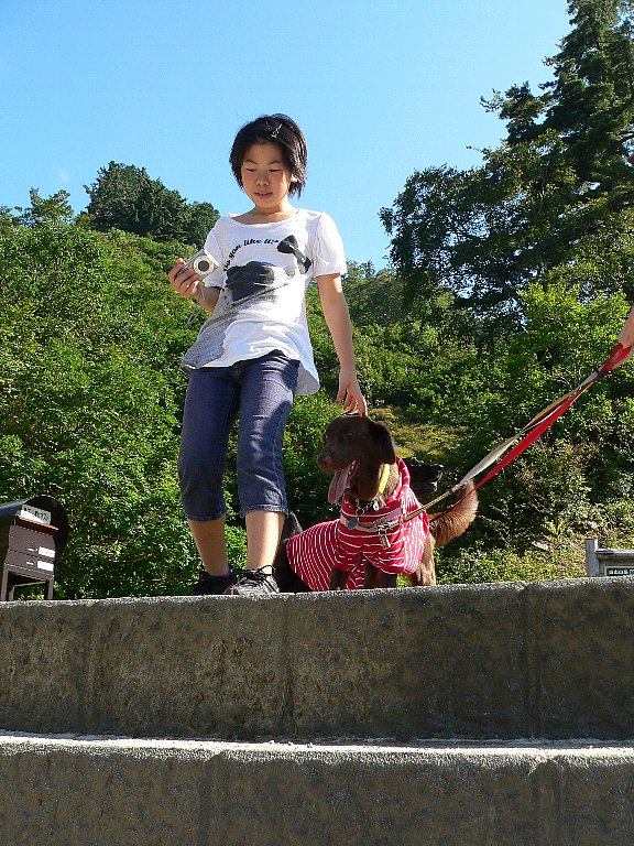 行きはずっと付けさせて歩いてたけど、もう帰りは引っ張ってくださいお願いします状態、何人かすれ違った方をやり過ごすときだけそばに呼び、そして休憩をかなり挟んで凜パパとねえちゃんを待ちくたびれさせました(^_^;)