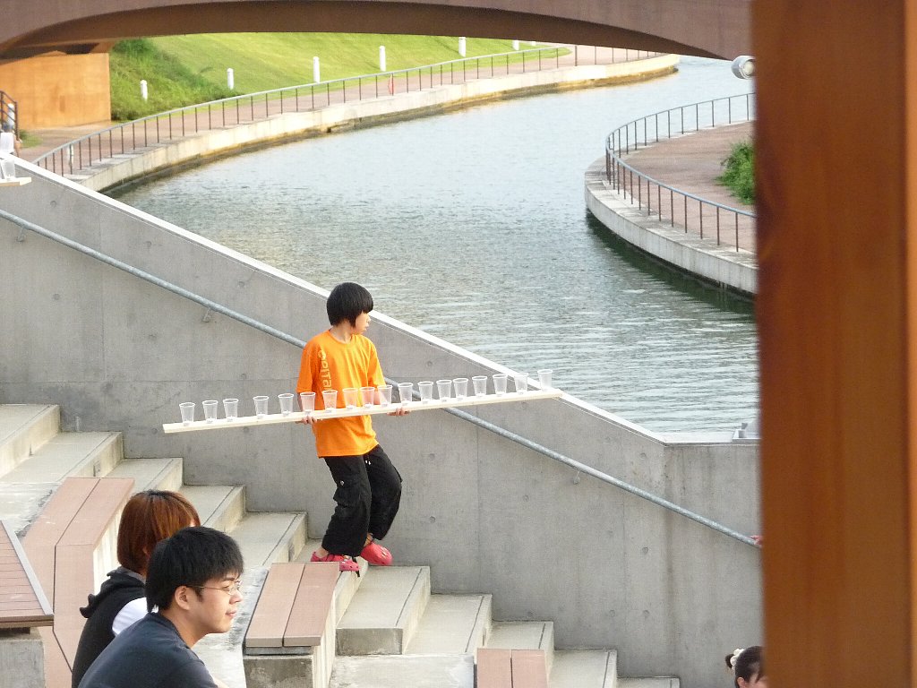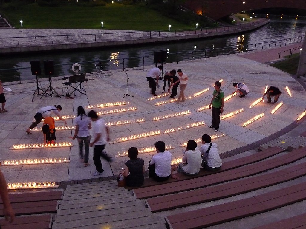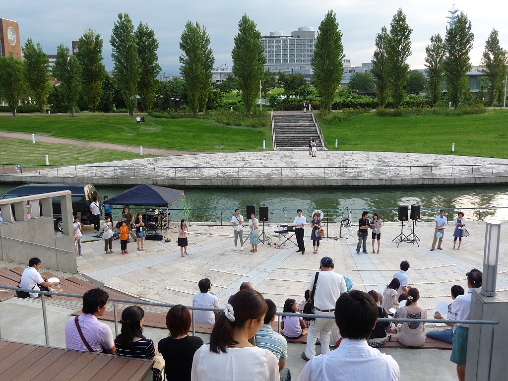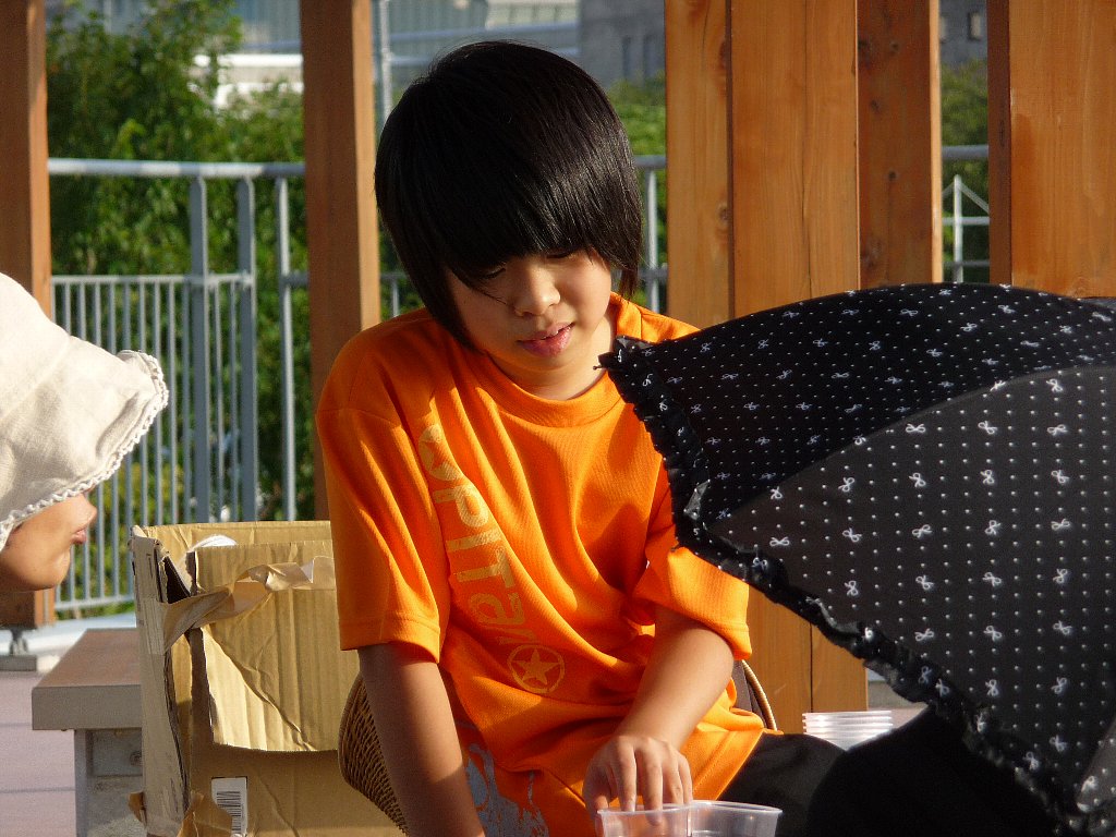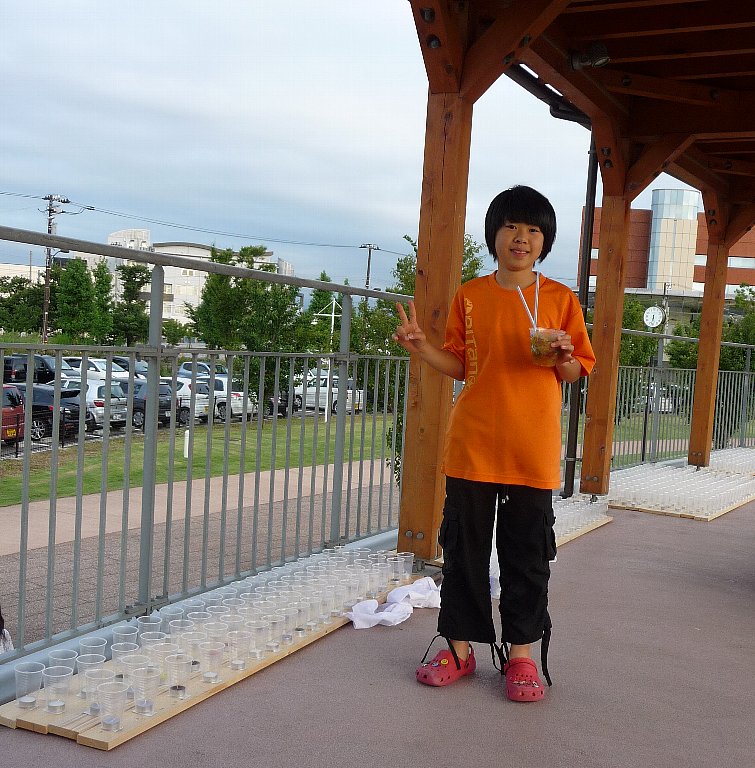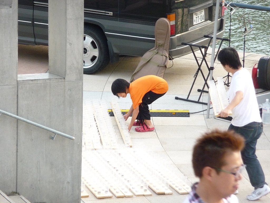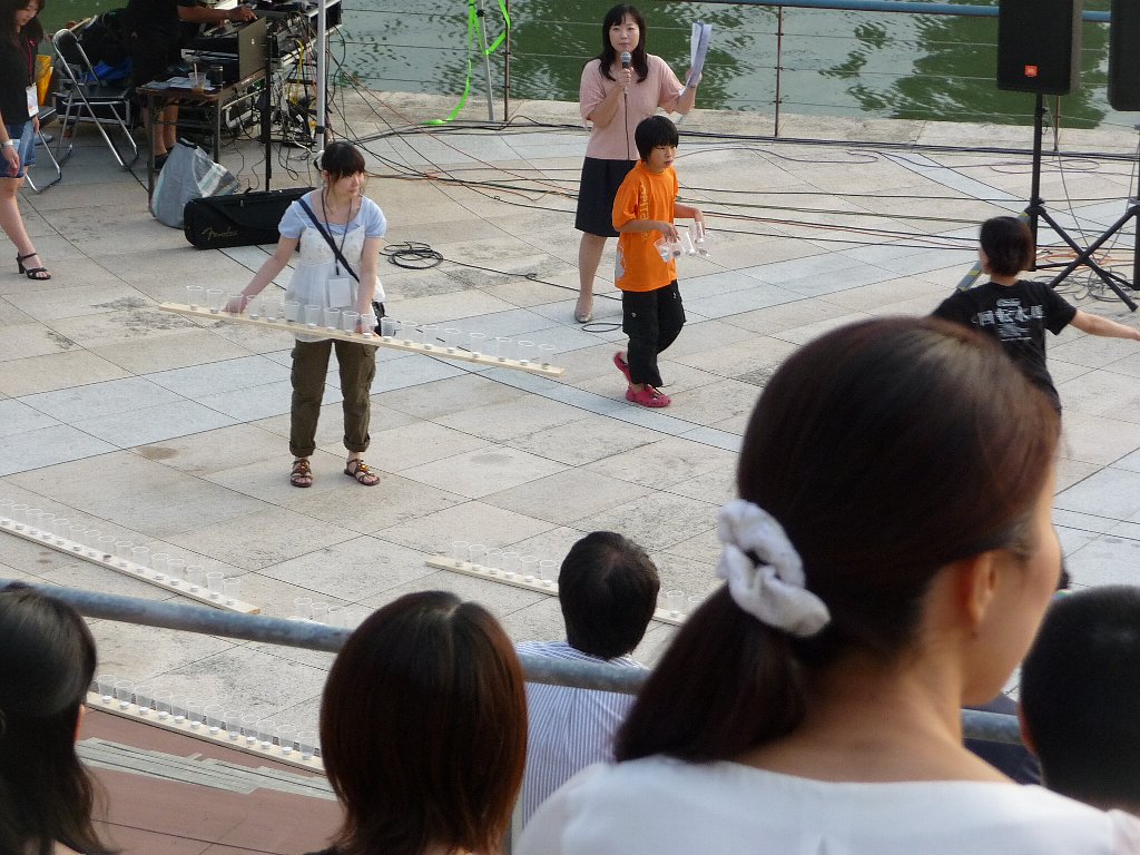 その後もいろんな演奏が行われ、その合間に今日のどうやらメインイベントの『とやま恋旅~ナツ編~ 』の小道具のひとつ500灯のキャンドルをコップに入れる作業のお手伝いをお願いしますと司会の方が言われたと思ったらねえちゃんが行ってもいい?!ってまぁうれしそうに行っちゃいました(^。^;)