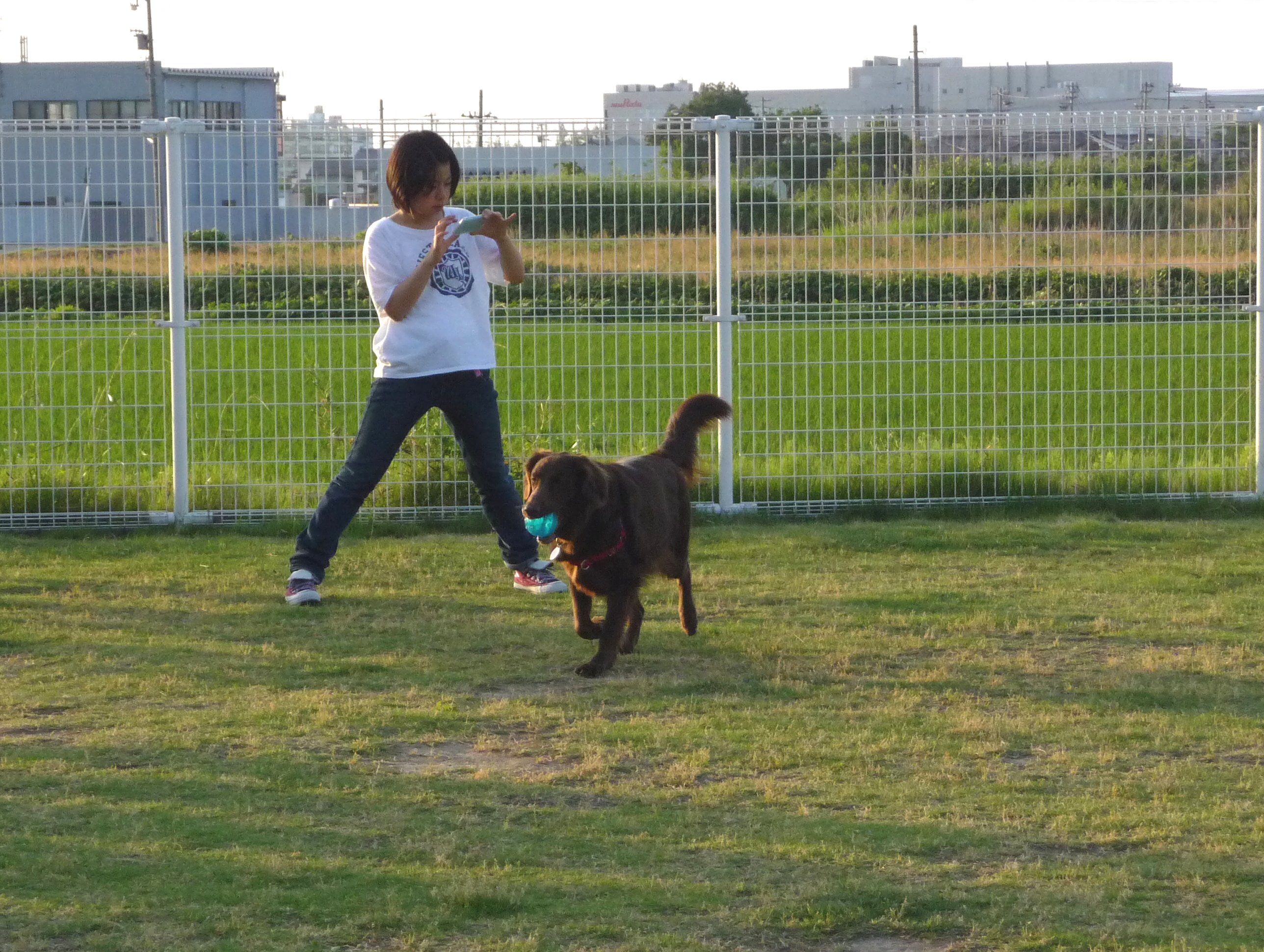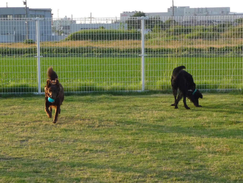 今日はお天気いいけど湿度が低いみたくって日陰はとっても快適、そんな本日姉ちゃん早帰り、で、chababaが仕事行ってる間にたっぷりお勉強したそうで(信じていいのだよね -。-;)夕散は久々にフリーにしてやるのにアミーゴさんへ。
