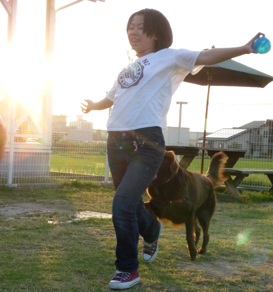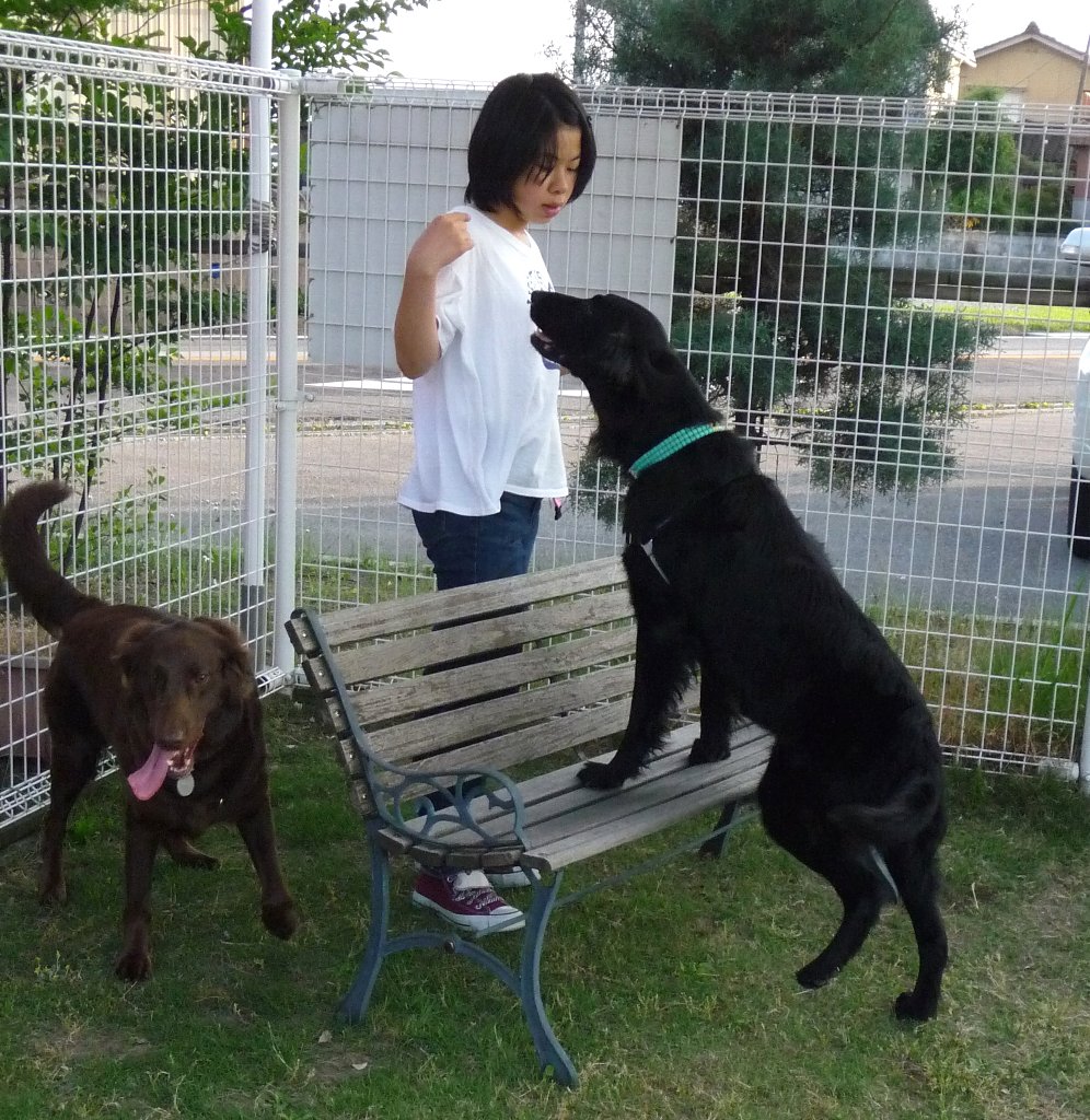 そろそろ帰るからもうちょっと走っとかれぇ~、ってのに姉ちゃんおやつもって凜の撮影会始めちゃったよ(--;)
