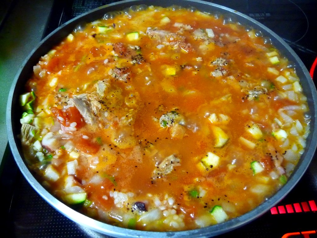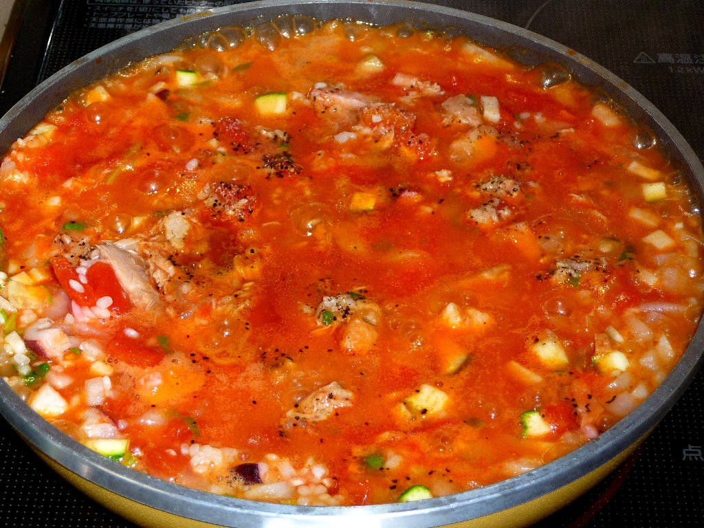 今日はごはんを炊いてなかったんでおコメからリゾット(--)b